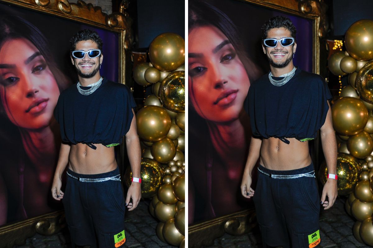 Gabriel Santana colocou um cropped, reagiu e foi para a festança de Bia Miranda (Eduardo Martins / Agnews)