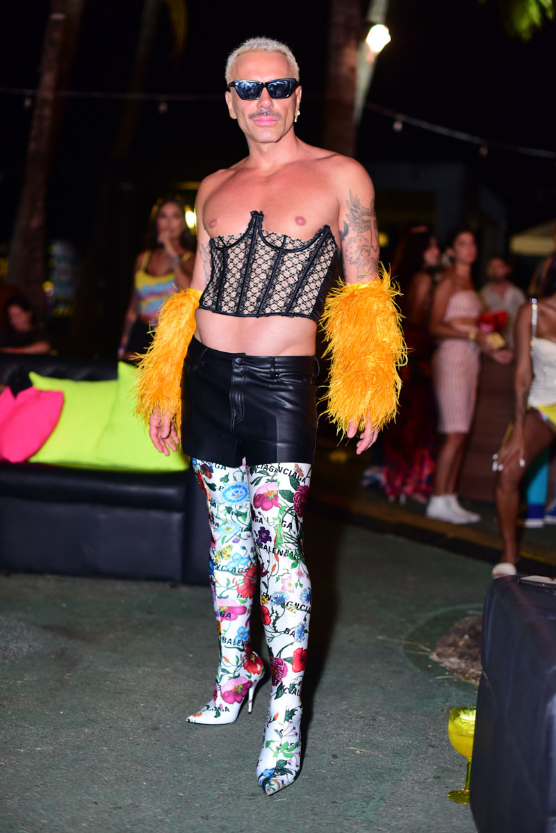 Matheus Mazzafera exibindo suas botas da coleção que marca a parceria entre Balenciaga e Gucci (Foto: Leo Franco/AgNews)