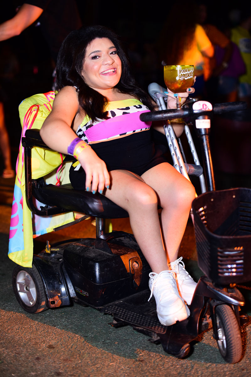 Outra sensação da ‘farofada’ foi a influenciadora e humorista Pequena Lo. Todos queriam uma carona em sua scooter! (Foto: Leo Franco/AgNews)