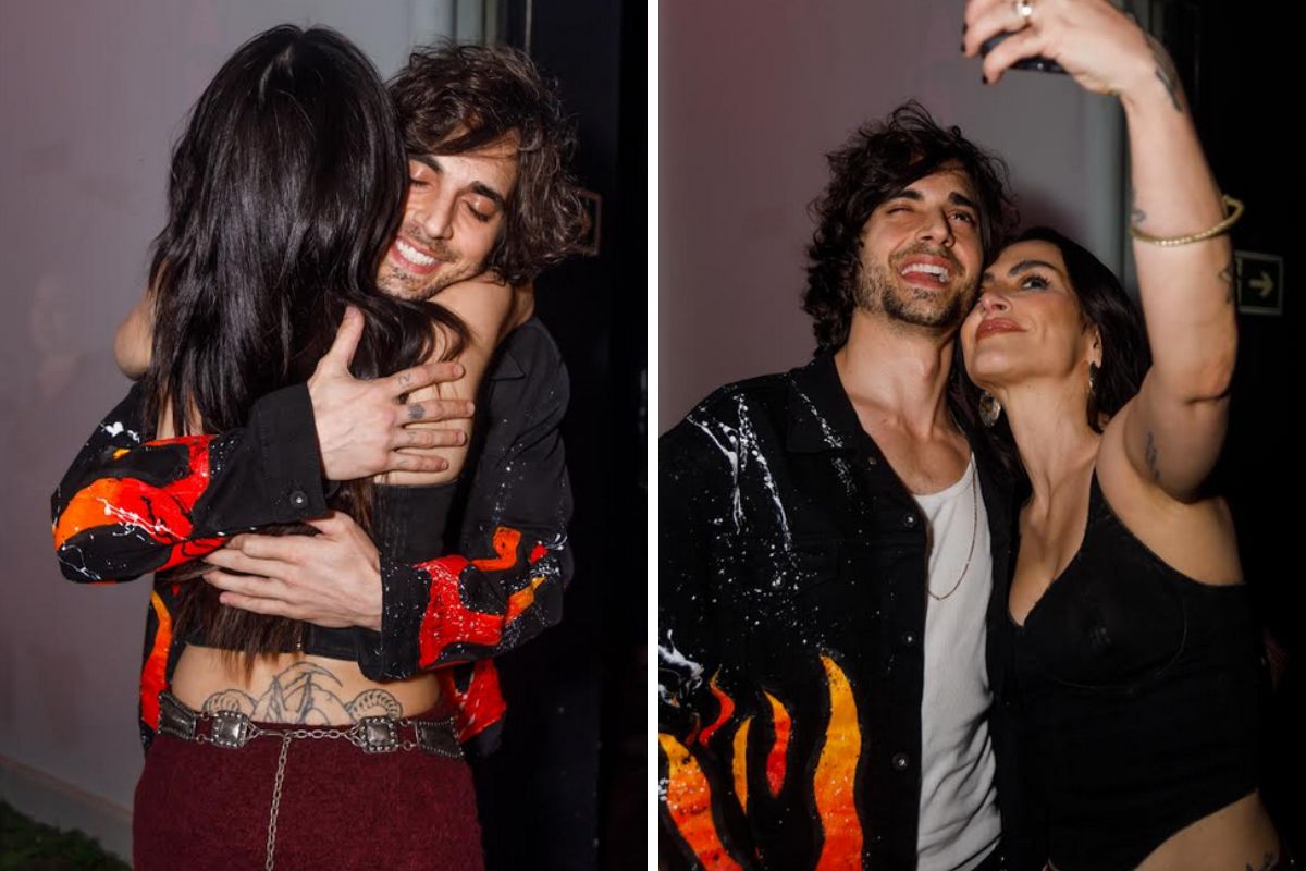 O abraço gostoso entre Cleo e Fiuk, que fazem selfie em seguida – Foto: Patrícia Devoraes/Brazil News