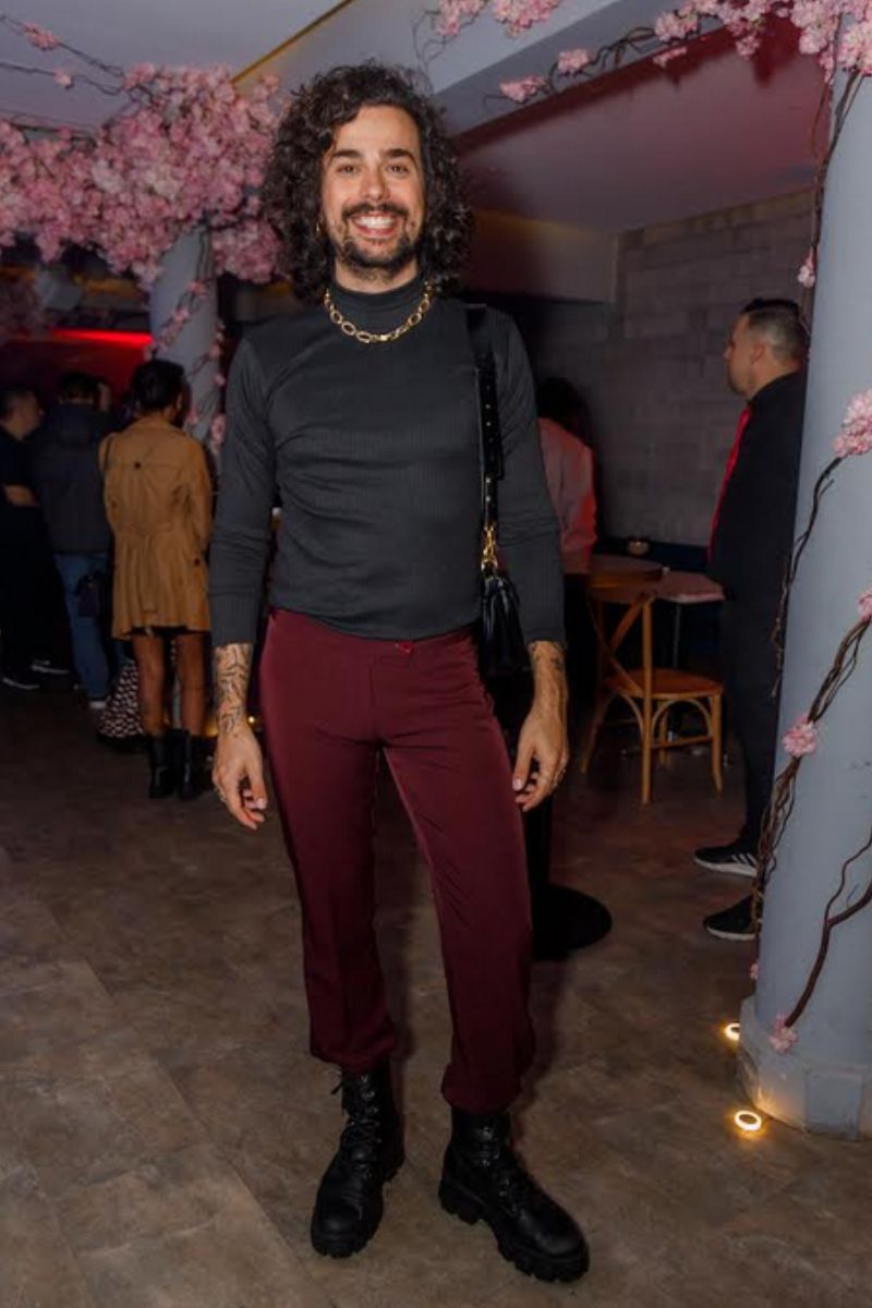 Daniel Rocha posa de casaco marrom, em festa de Cleo – Foto: Patrícia Devoraes/Brazil News