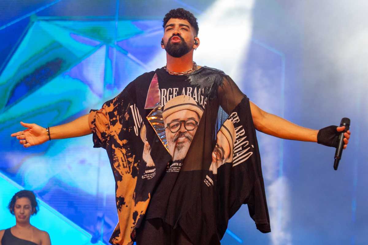 A apresentação do astro foi descrita como impecável pelos fãs, chegando a ter contado com um coro impagável e invejável dos seguidores. Em relação ao look, Dilsinho apostou em uma camiseta bastante folgada com estampa do rosto e nome de Jorge Aragão, lenda do samba brasileiros. Uma belíssima homenagem!