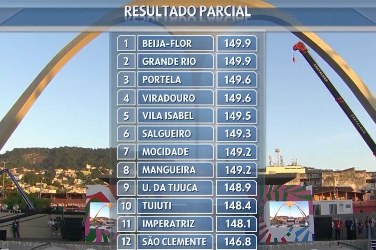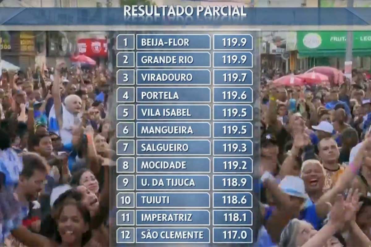Tabela após notas do quinto critério da apuração do Rio de Janeiro (Foto: Reprodução/TV Globo)