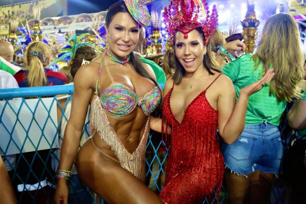 Encontro de beldades na Sapucaí! Musa do Camarote Praia, Gracyanne Barbosa encontrou Renata Frisson, a Mulher Melão, na noite de sábado, 23 de abril, no segundo dia de desfiles das escolas de samba do Grupo Especial do Rio de Janeiro.