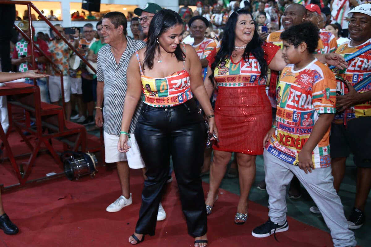 O sambista, acompanhado por sua esposa, Mônica, uma das filhas e o neto, Noah, Zeca causou furor na quadra da agremiação, na Baixada Fluminense.