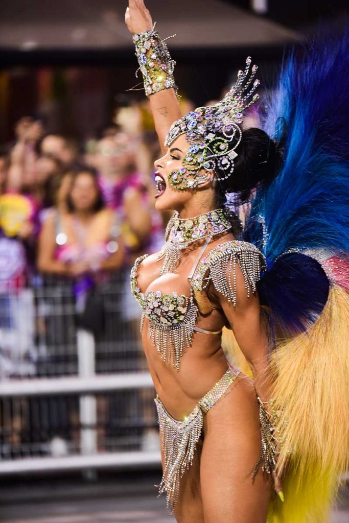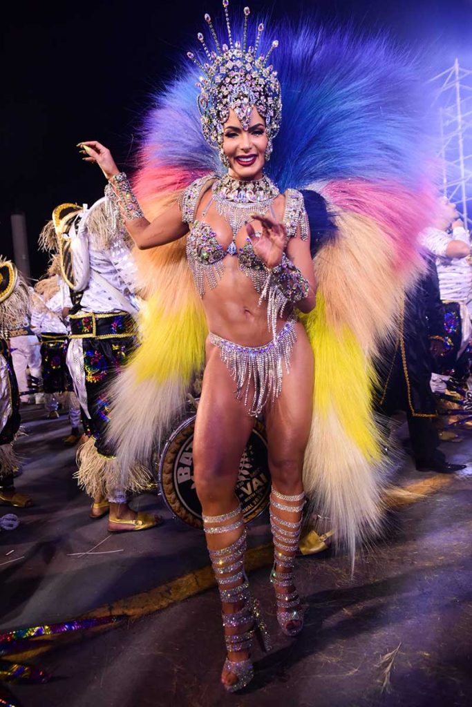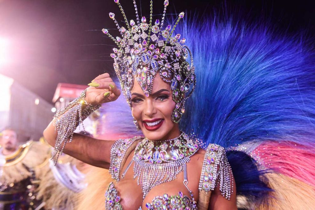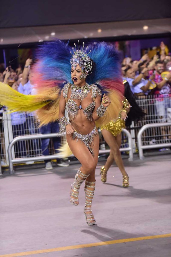 Não dava para saber quem brilhava mais: Carla ou a fantasia, composta por mais de 10 mil cristais e toda banhada a prata, confeccionada por feita por Rodrigo Andrett. A plumagem, ecologicamente correta, foi escolhida com as cores da aurora boreal.