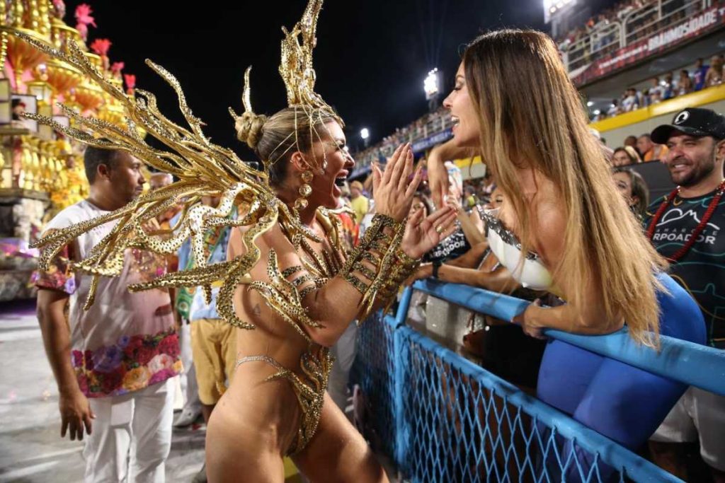 Carnaval: Lore Improta cumprimenta Paola Oliveira em meio a desfile