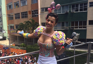 Milena Nogueira levantou a galera presente na Marquês de Sapucaí, no Rio de Janeiro, para assistir aos desfiles das escolas do Grupo de Acesso.