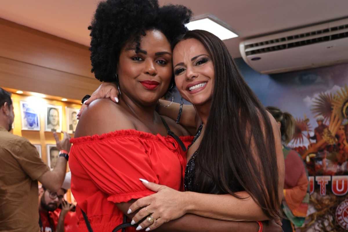 Já no Salgueiro, Viviane Araújo, que é Rainha de Bateria da escola há muitos anos, claro que marcou presença no “Salgueiro Convida Viradouro”, estando com uma roupa preta cheia e brilho. Ela ainda recebeu famosos como Cacau Protásio, Carla Cristina Cardoso e, obviamente, seu marido, Guilherme Militão.
