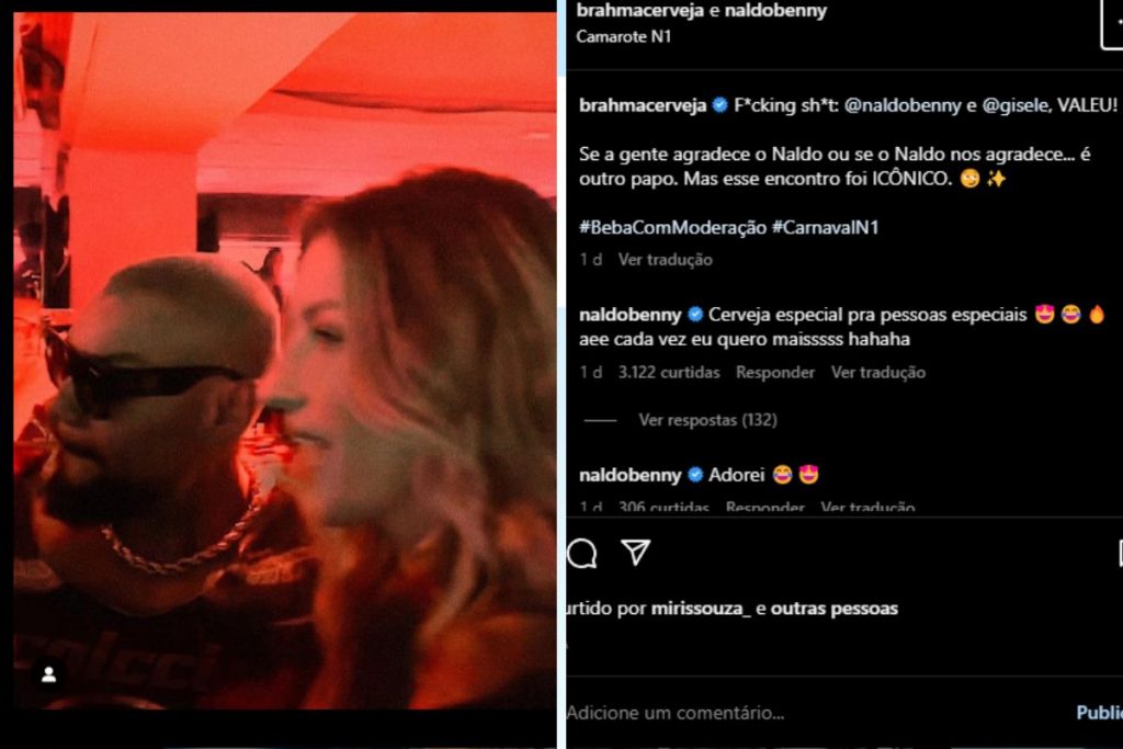 Naldo Benny falou nas últimas semanas que a top model Gisele Bündchen quebrou o jejum de 12 anos sem vir ao Brasil comemorar o Carnaval por conta de um convite que ele teria feito e ela não recusou. Alguns internautas duvidaram e falaram que ele estaria mentindo, já que segundo informações do Extra, ela veio com um contrato milionário para ficar no Camarote Brahma.