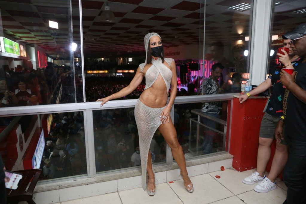 A apresentadora da Record TV que já foi musa do Salgueiro por vários anos, estava à vontade e todos os sentidos, inclusive no look. A japonesa vestiu uma roupa de metal, criada para ela com exclusividade por Natalia Fedner. O corpão, sempre em forma, ficou mais uma vez em evidência diante da transparência do look. Um lacre!