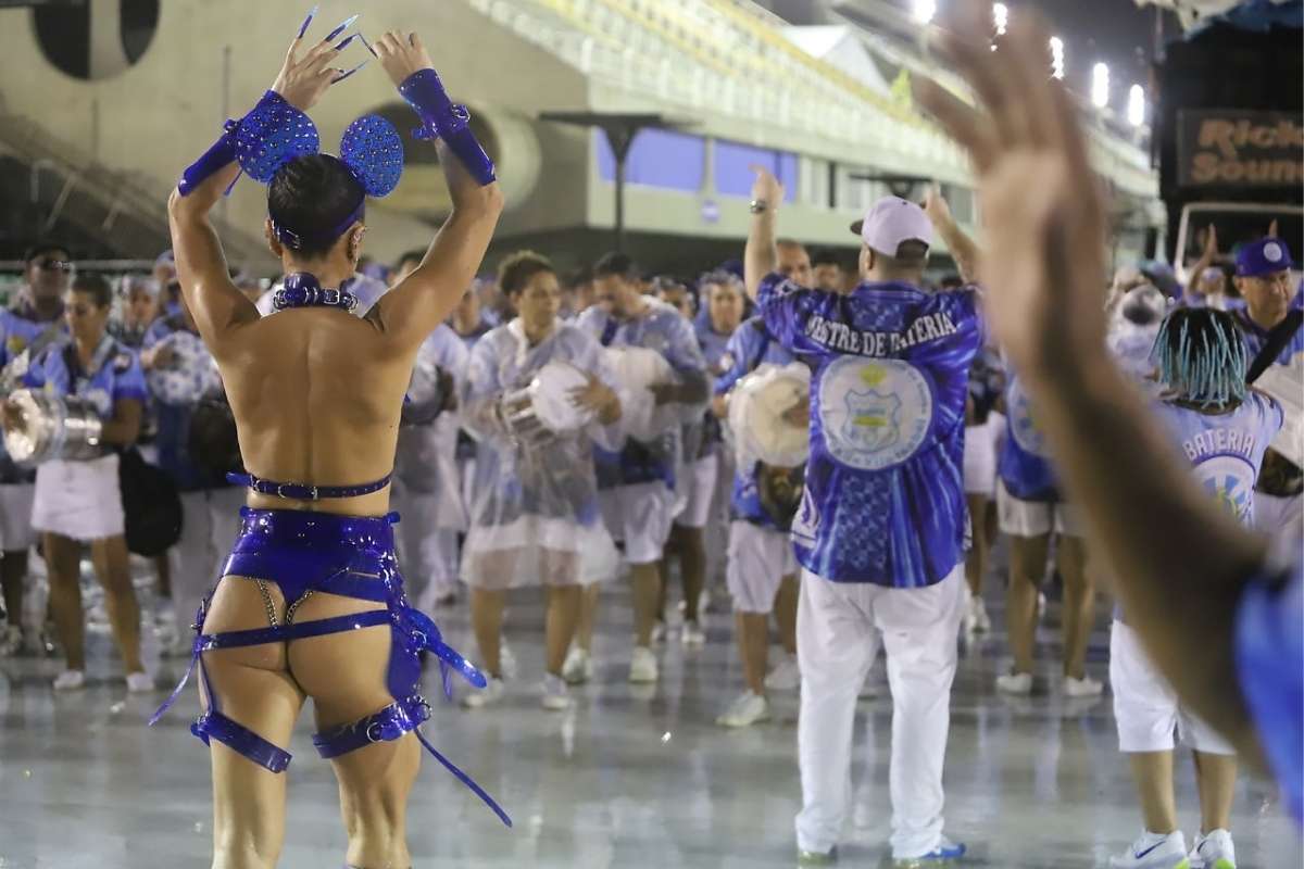 Com forte chuva no Rio de Janeiro, escola fez seu ensaio técnico mesmo com a tempestade. Foto: Daniel Pinheiro/AgNews