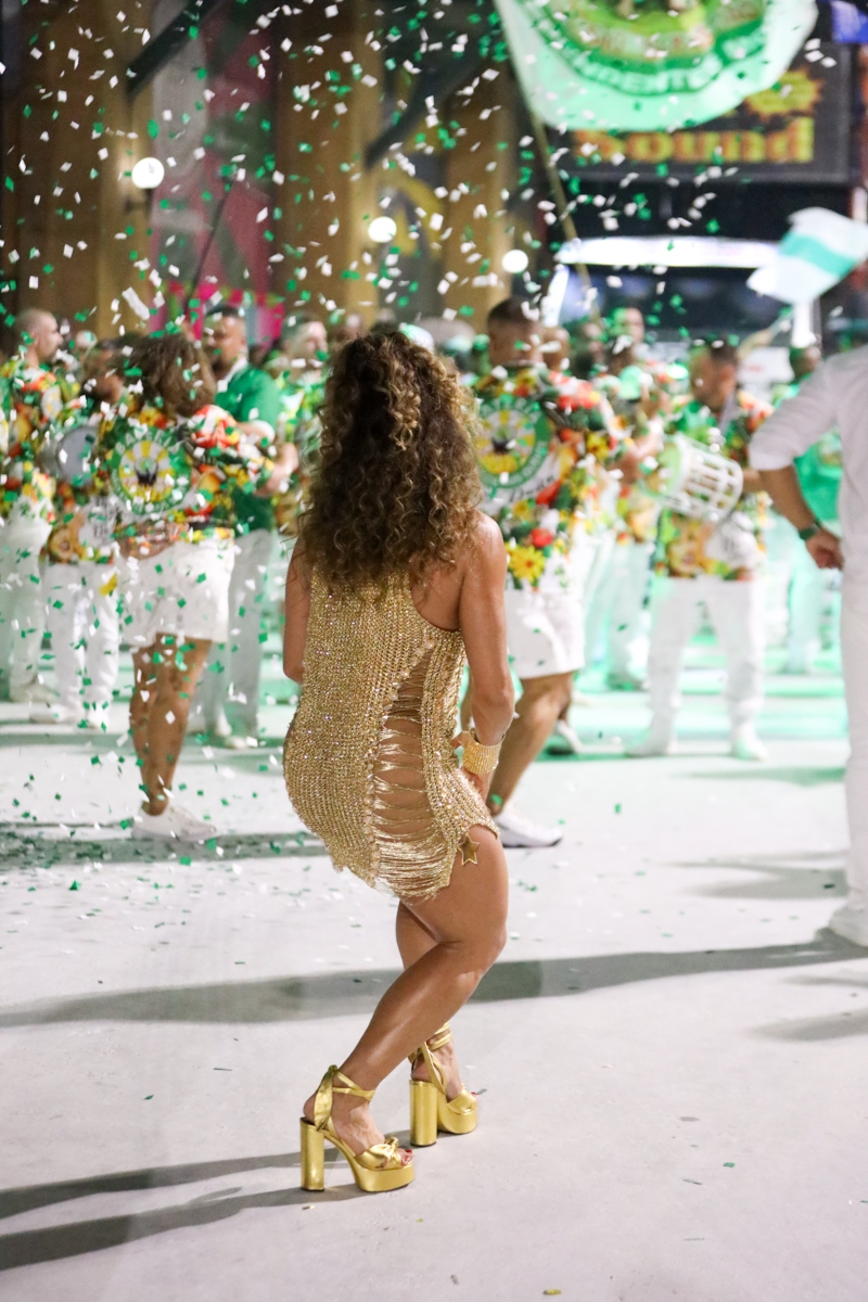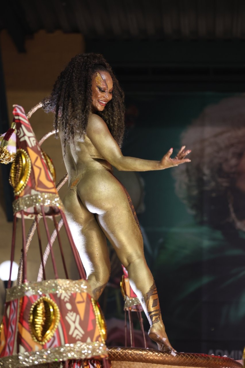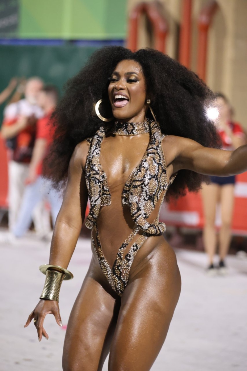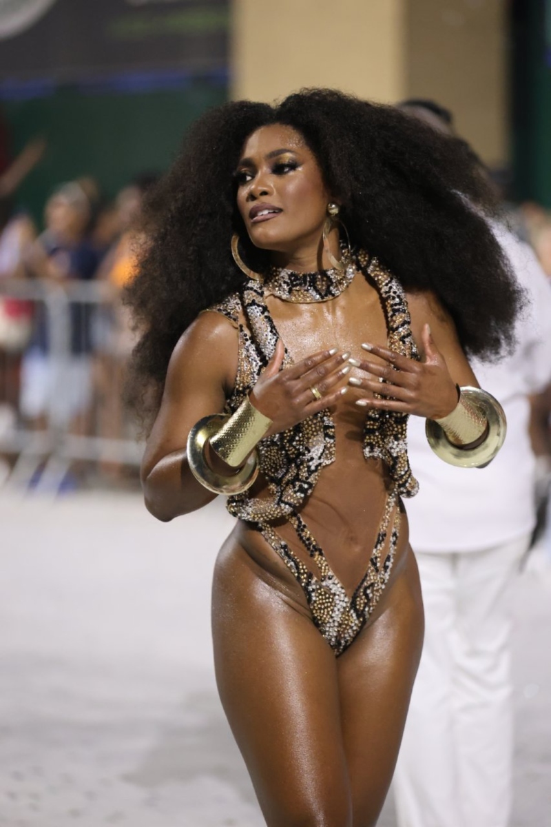 Mas a beleza, o carisma e o samba no pé de Erika Januza, soberana da bateira da Unidos do Viradouro, foi um show à parte. A mesma agremiação a ex-coleguinha do extinto “Caldeirão do Huck”, Luana Bandeira, causou na performance.
