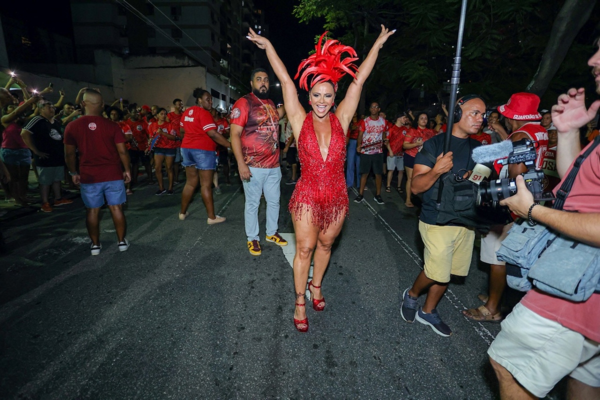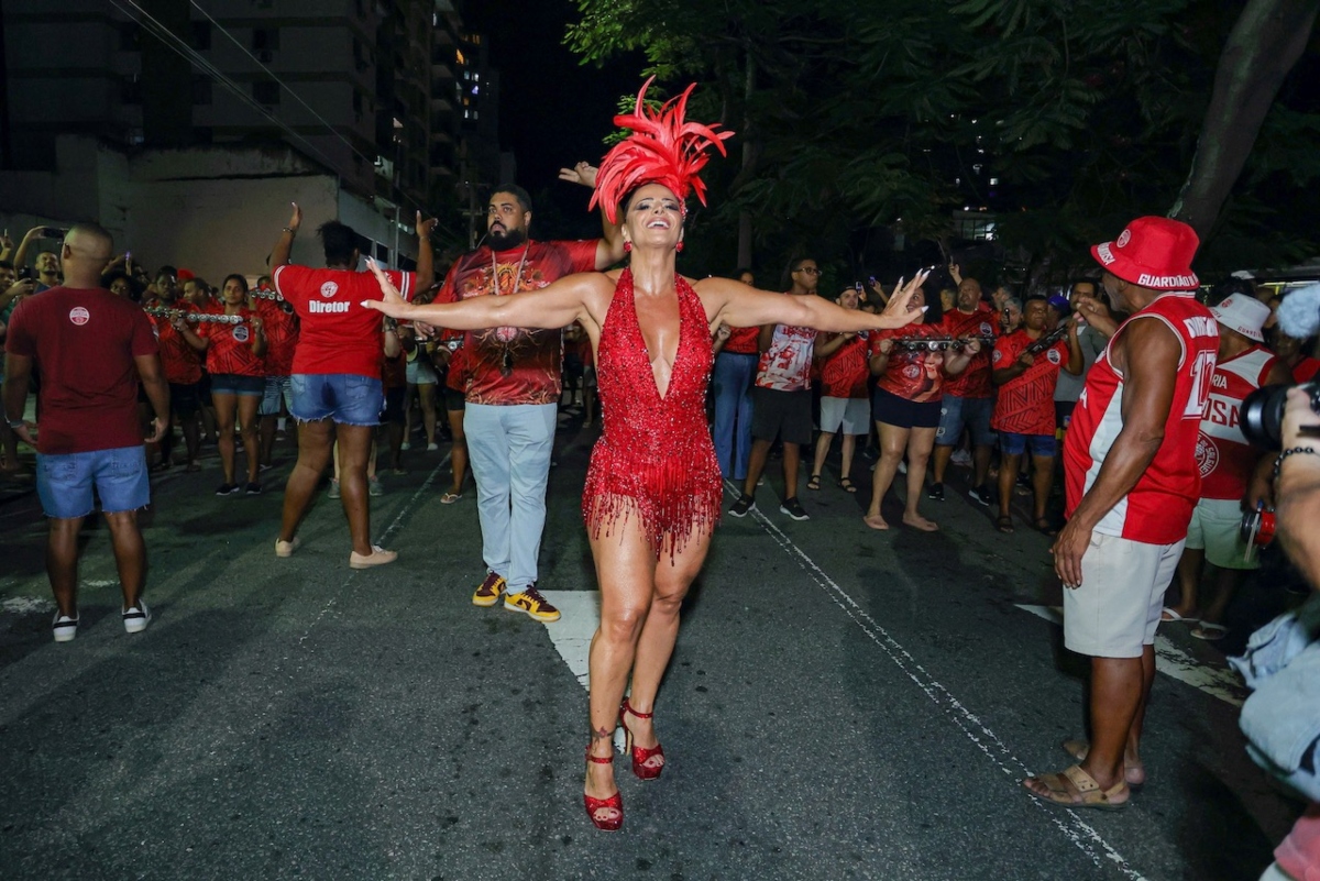 Viviane Araujo, a ‘rainha das rainhas’, arrasa no primeiro ensaio de rua do Salgueiro