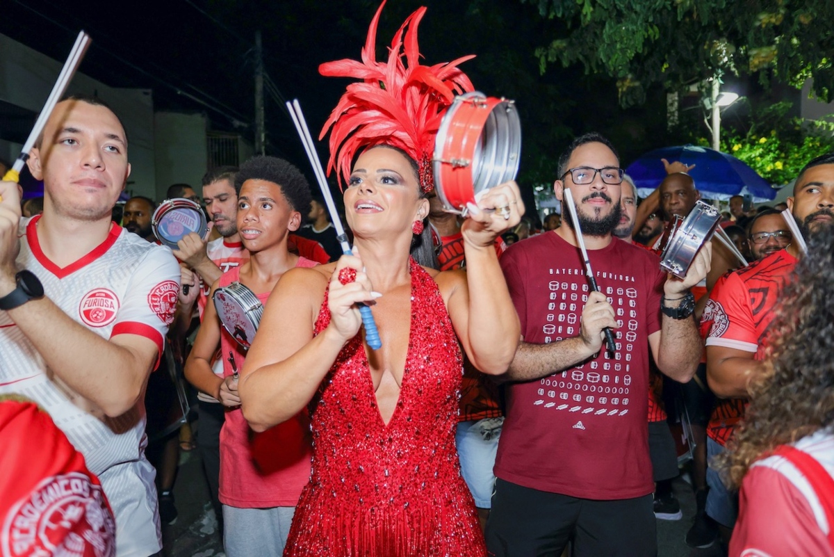 Quem é do samba, sabe: ensaio de rua é tudo de bom! E na noite quinta-feira, 30 de novembro, o Salgueiro fez o primeiro treino de comunidade na Rua Maxwell, na Zona Norte do Rio de Janeiro, com a presença da rainha da bateria, Viviane Araujo.