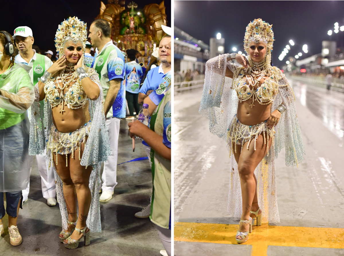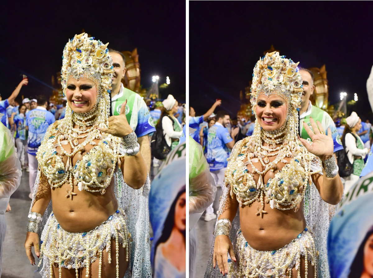 Gravidíssima, Viviane desfilou no Sambódromo do Anhembi, em São Paulo, usando uma fantasia feita pelo stylist Henrique Luna, com cerca de 20 mil cristais, pérolas e conchas, para representar Iemanjá.