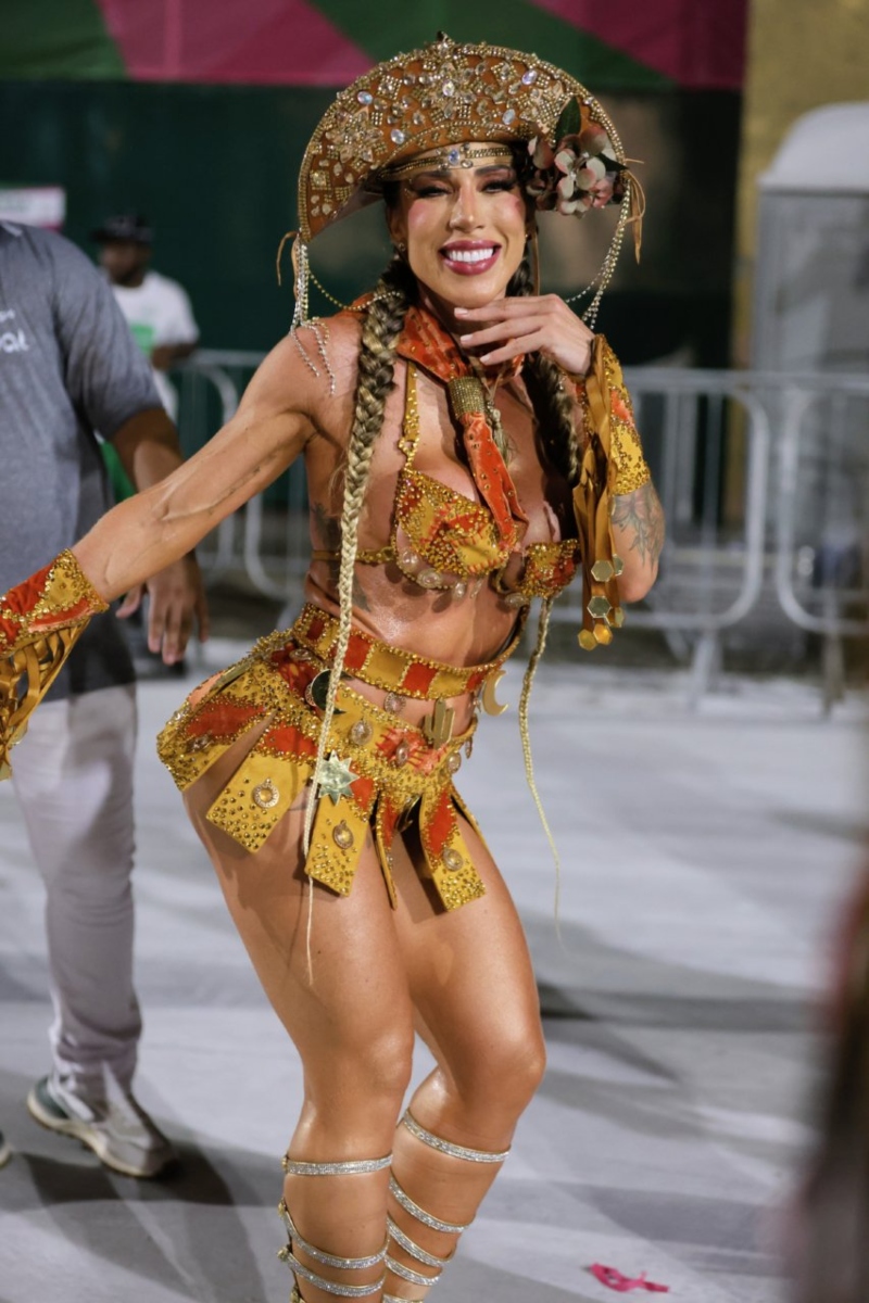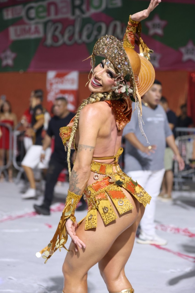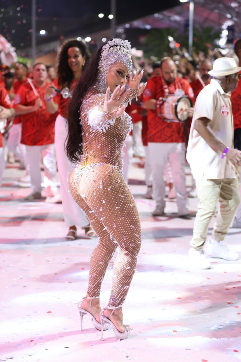 Lexa, por sua vez, mostrou mais uma vez seu gingado irretocável diante da “Pura Cadência”. Cada vez mais entrosada com o samba e elogiadíssima pelo público que lotou o local, Paolla Oliveira irradiou simpatia e beleza à frente da “Invocada”. Estreando como musa da Porto da Pedra, que em 2024 retorna à elite após vencer o último desfile da Série Ouro, Giovana Cordeiro impressionou com seu gingado e desenvoltura.