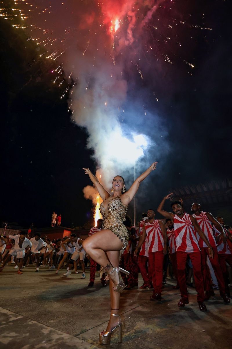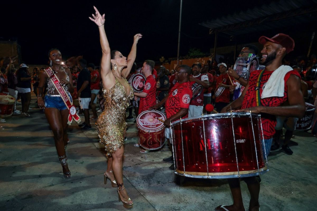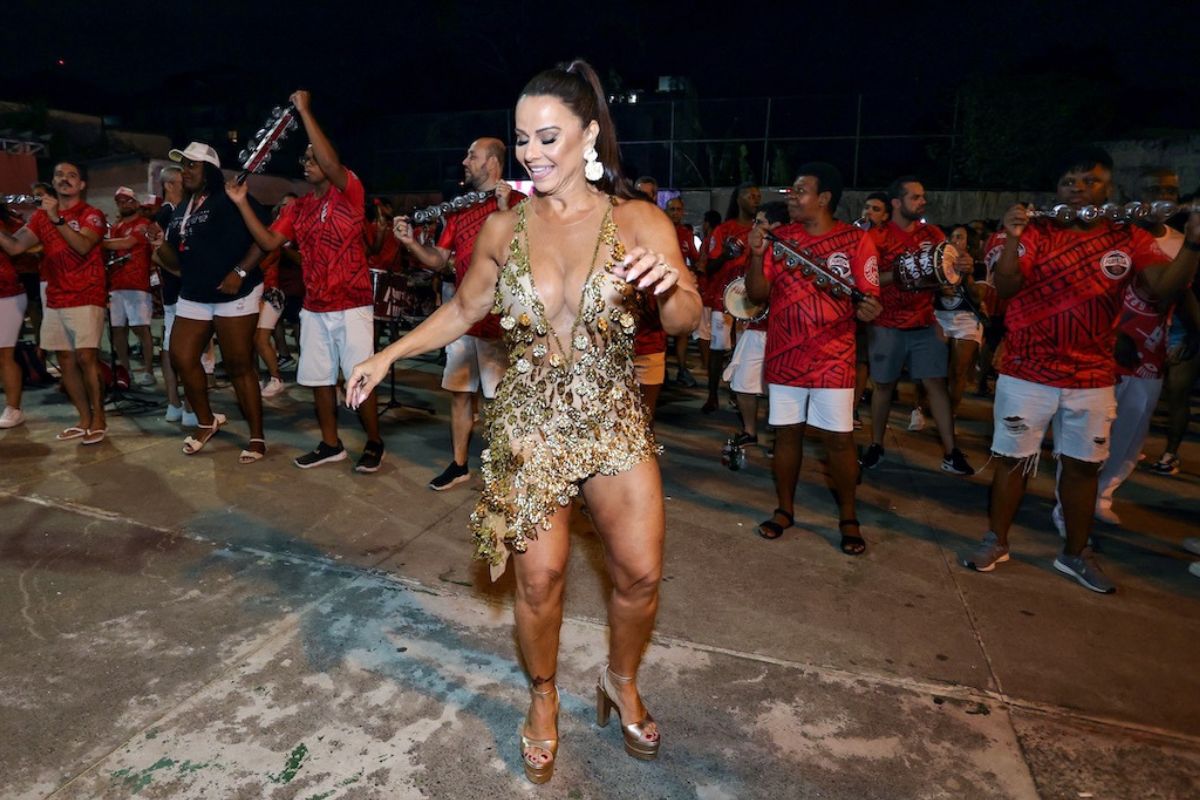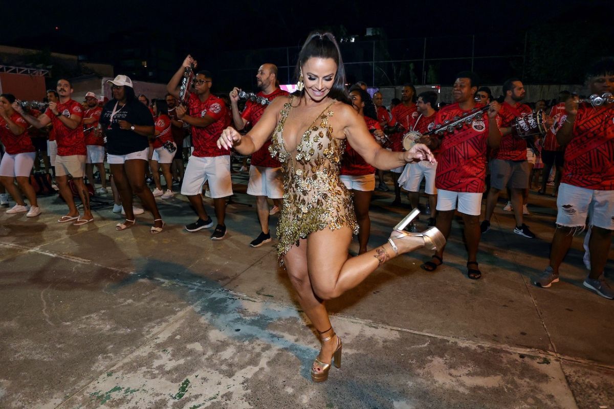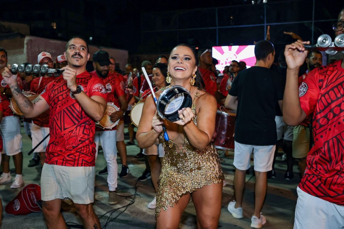 Viviane Araújo elegeu um vestido dourado para um ensaio mais que especial do Salgueiro. Nos preparativos para o Carnaval de 2024, a escola promete dar um show na Marquês de Sapucaí.