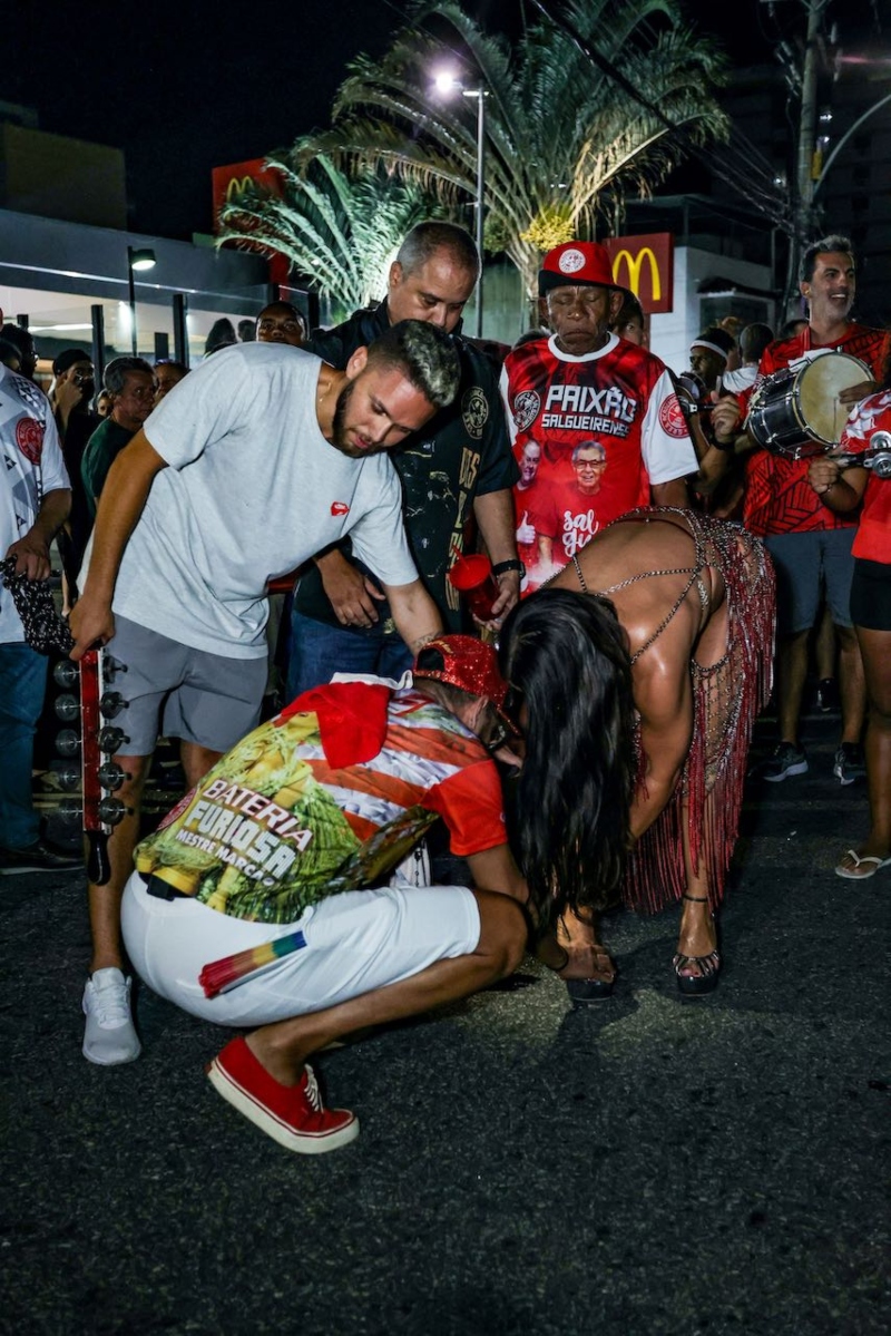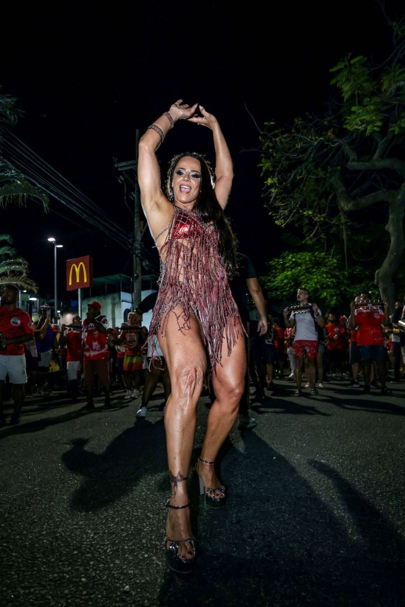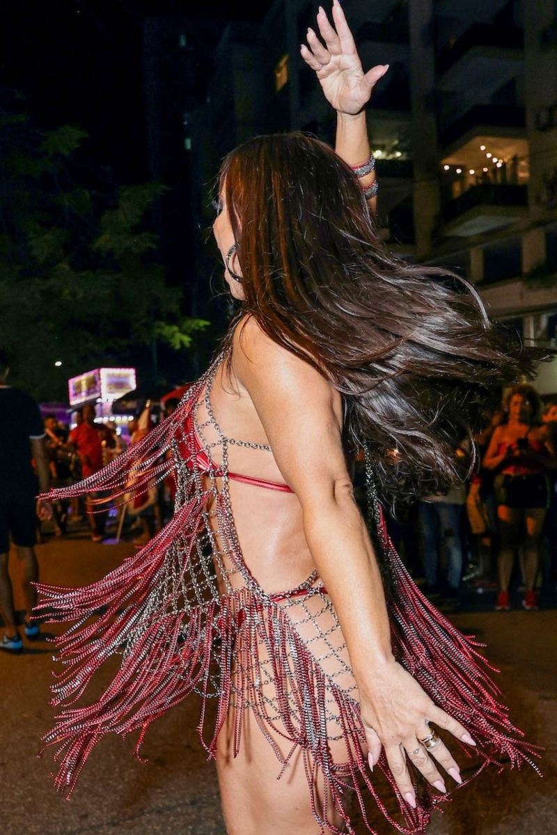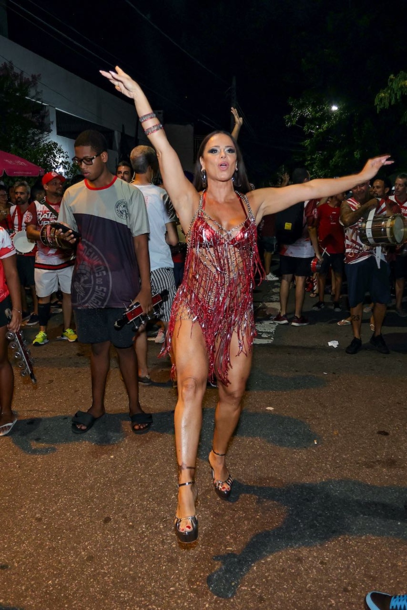 Mas o samba rolou solto na “despedida”, com a onipresente rainha de bateria da vermelho e branco. Exuberante, Viviane Araújo despontou com um biquíni vermelho metálico, coberto por um vestido de franjas no mesmo tom, que evidenciava sua forma física.