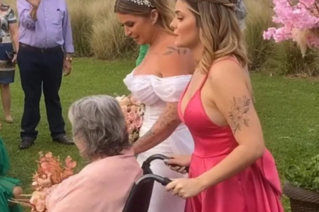 “Chegou o dia de casar minha mãe! Com direito a 4 gerações entrando juntas, Izaura, Viviane, Vitória e Lu. Com meus outros dois nenéns levando as alianças e muita energia boa. Obrigada meu Deus por esse dia perfeito! E obrigada a meus parceiros que fizeram esse dia mais perfeito ainda!”