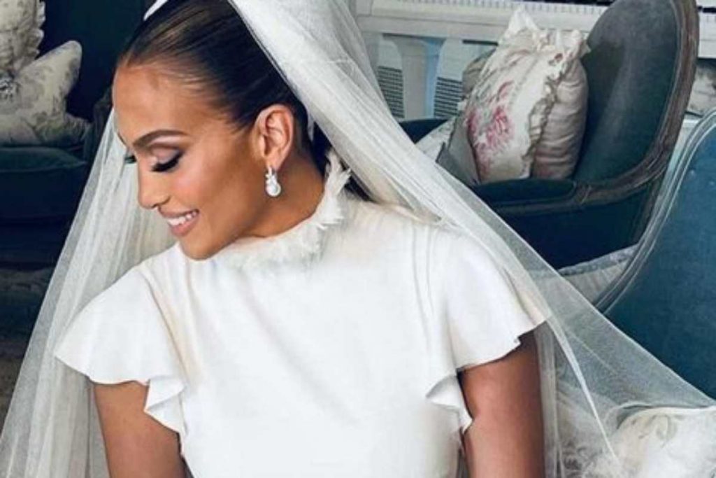 J-Lo usou um elegante vestido branco com babados e um longo véu durante a segunda cerimônia de casamento dela e de Ben, e um dos protocolos é que todos os convidados também deveriam vestir-se de branco como os noivos.