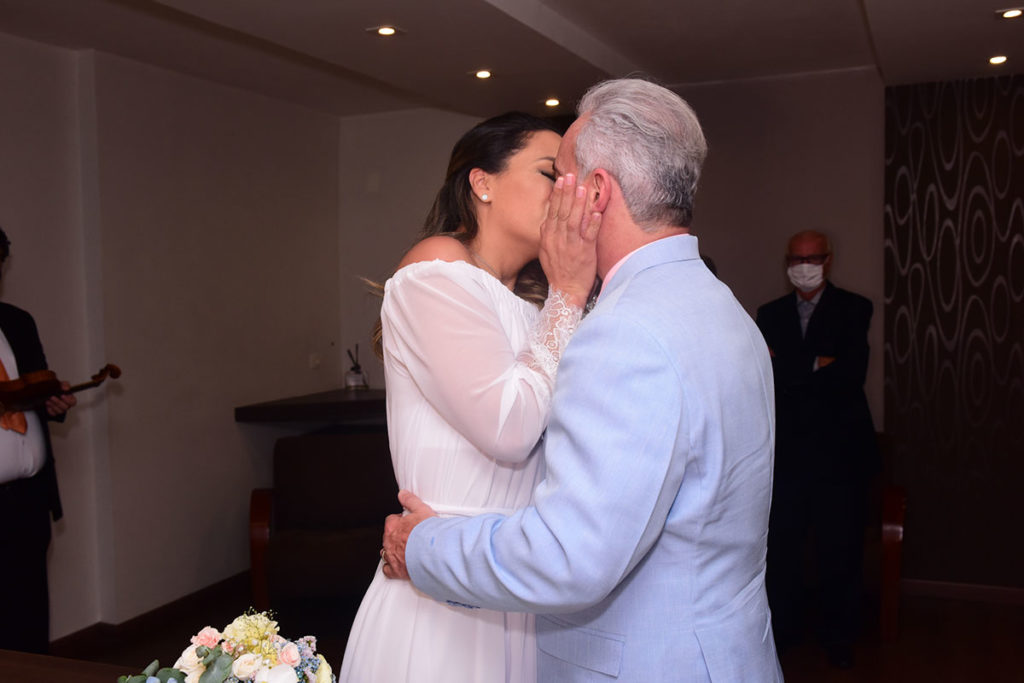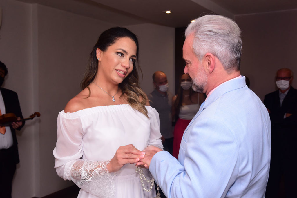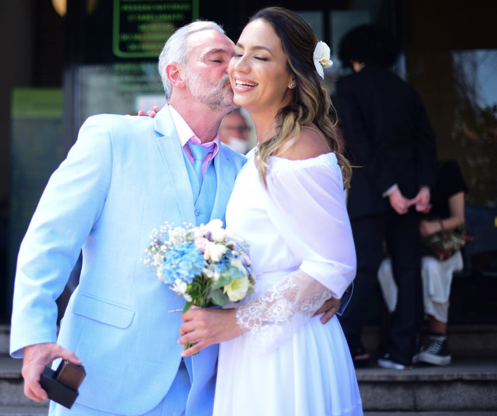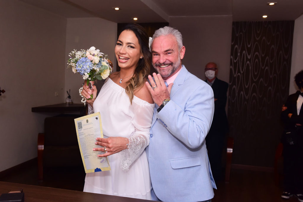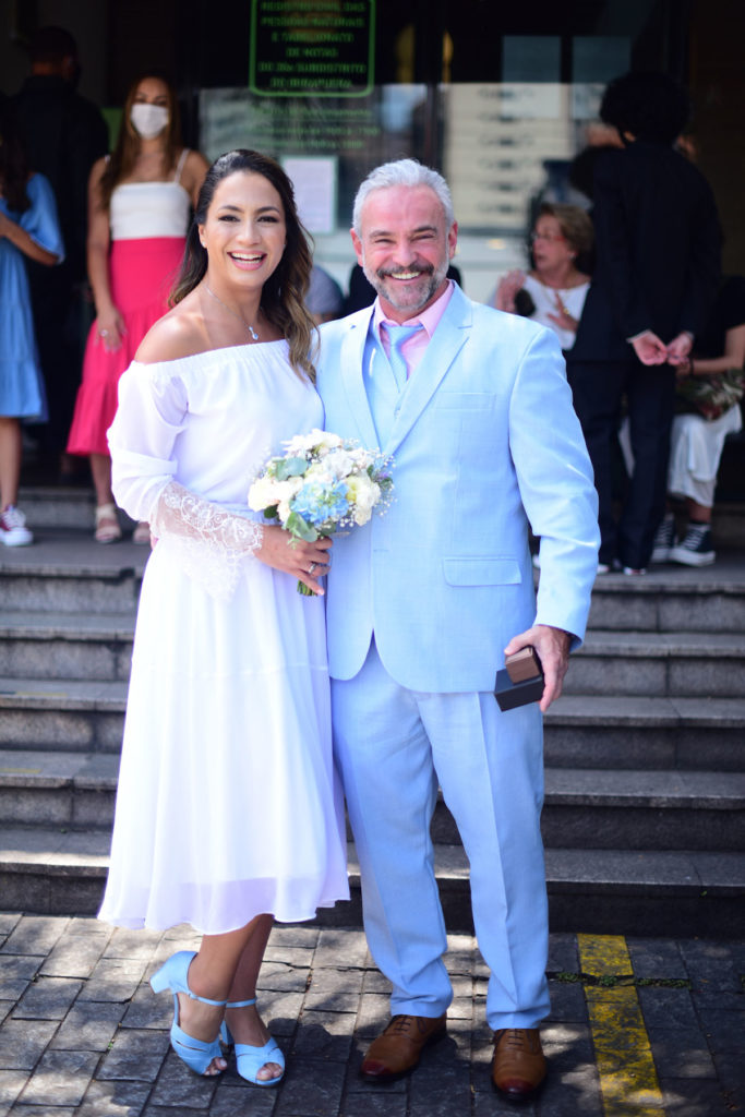 Ao som de um violino, Mateus Carrieri (54) e Day Ribeiro (38) disseram o famoso sim, na manhã desta sexta-feira, 22 de outubro, em um cartório, em São Paulo.