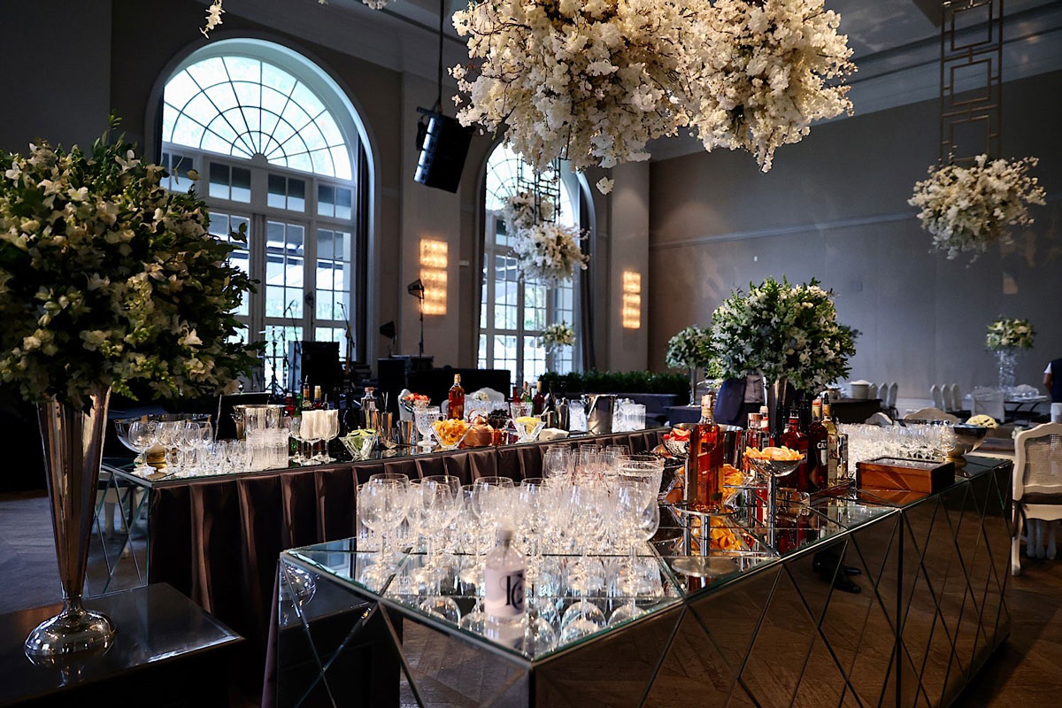 O bar da festa rodeado pelas flores da decoração (Foto: Manuela Scarpa/Brazil News)
