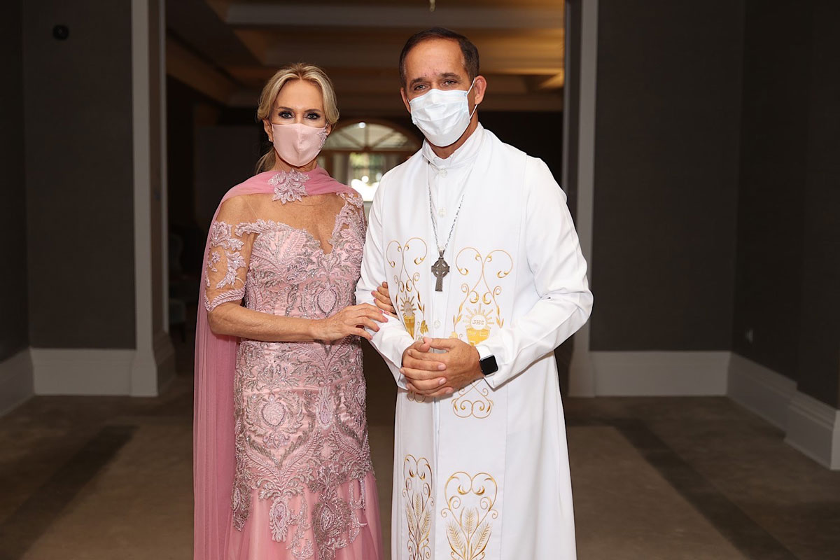 Respeitando as normas de segurança contra a Covid-19, toda a cerimônia foi pensada para poucos convidados, evitando aglomerações, e com certo distanciamento entre as mesas. Máscaras faciais personalizadas foram distribuídas e o álcool em gel não faltou também.