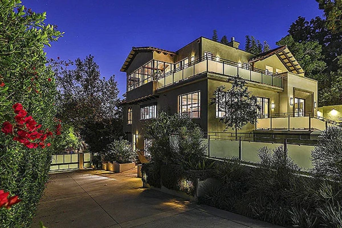 Há também uma casa de hóspedes independente, com uma suíte e uma academia acima de uma garagem. As comodidades incluem uma sala de bilhar e uma sala com home theater. Entre a casa principal e a casa de hóspedes também há uma piscina e spa.