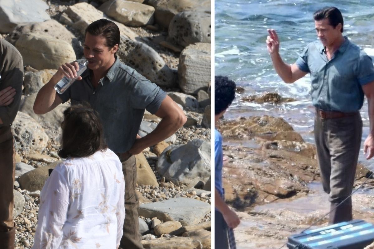 De volta ao trabalho: Brad Pitt foi visto gravando o próximo filme Babylon na costa de San Pedro, Califórnia, na quarta-feira, 8 – Foto: Grosby Group
