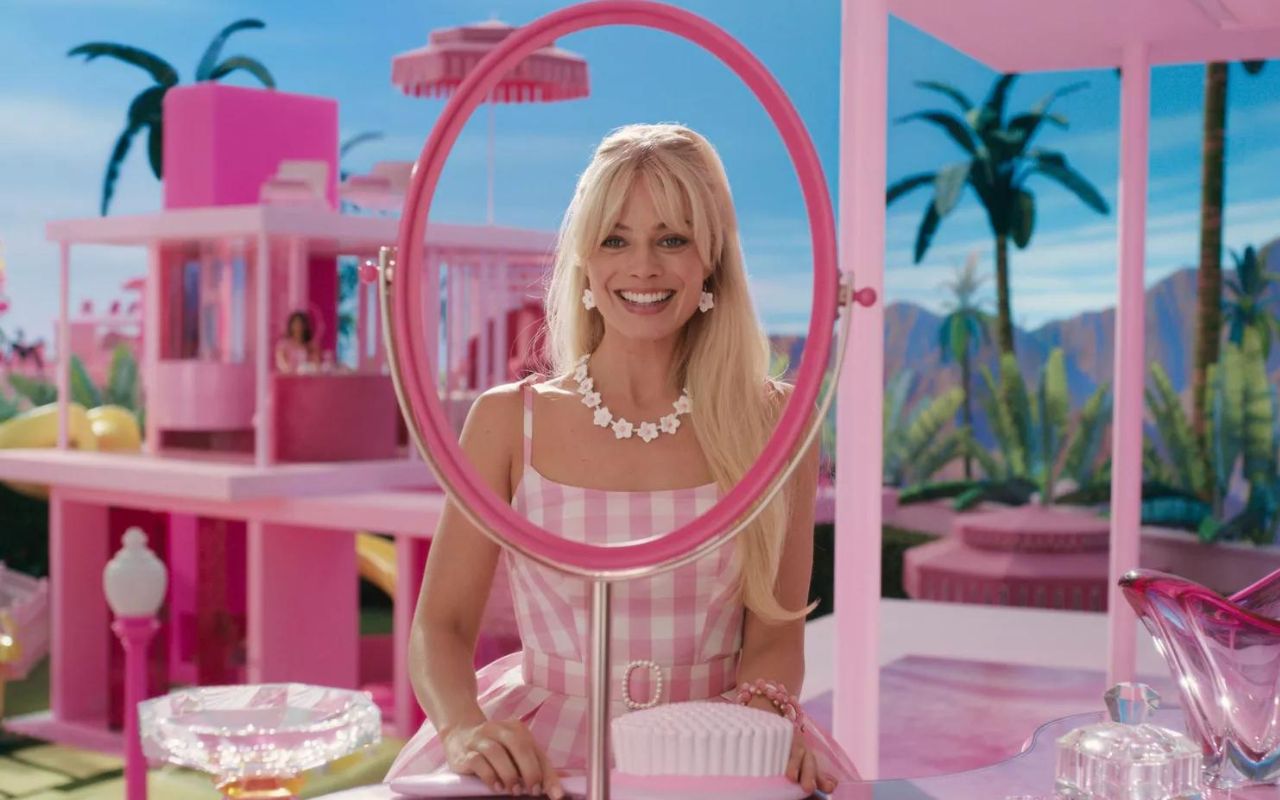As roupas da Barbie (Margot Robbie) tem o rosa como prioridade – Warner Bros. Pictures/ Divulgação