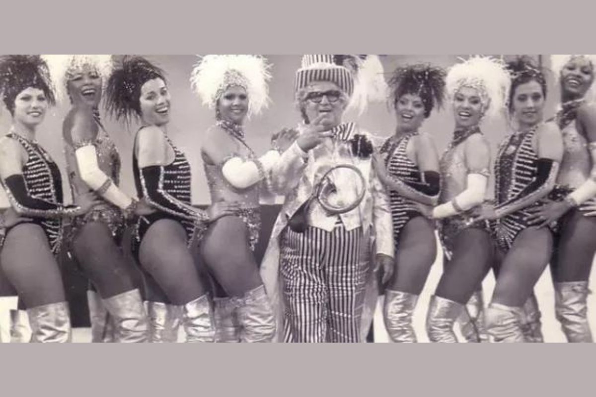 Rita Cadillac com Chacrinha e as demais Chacretes da época – Foto: Reprodução