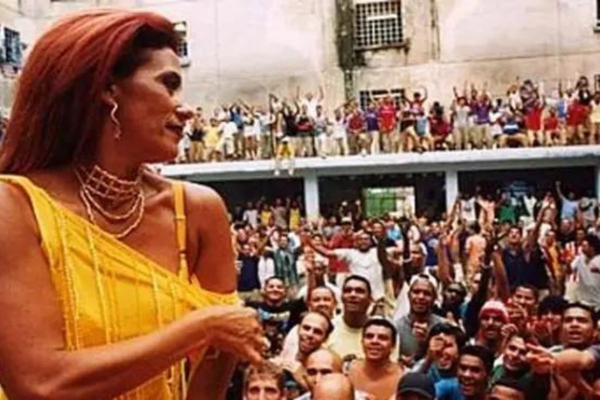 Reprodução de foto onde Rita Cadillac se apresentou no Presídio do Carandiru – Foto; Reprodução
