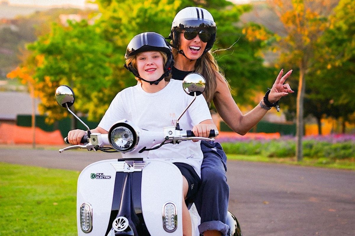 Na manhã deste domingo, 17 de setembro, ela aproveitou o dia de Sol no interior de São Paulo, para andar de moto com seu filho Vittorio, no condomínio onde moram.