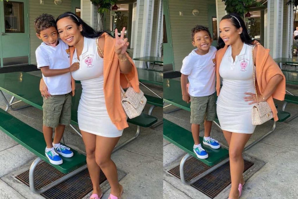“Primeiro dia do meu menino no jardim de infância… a mamãe não está bem”, disse Jordan, emocionada em deixar o filho no colégio.