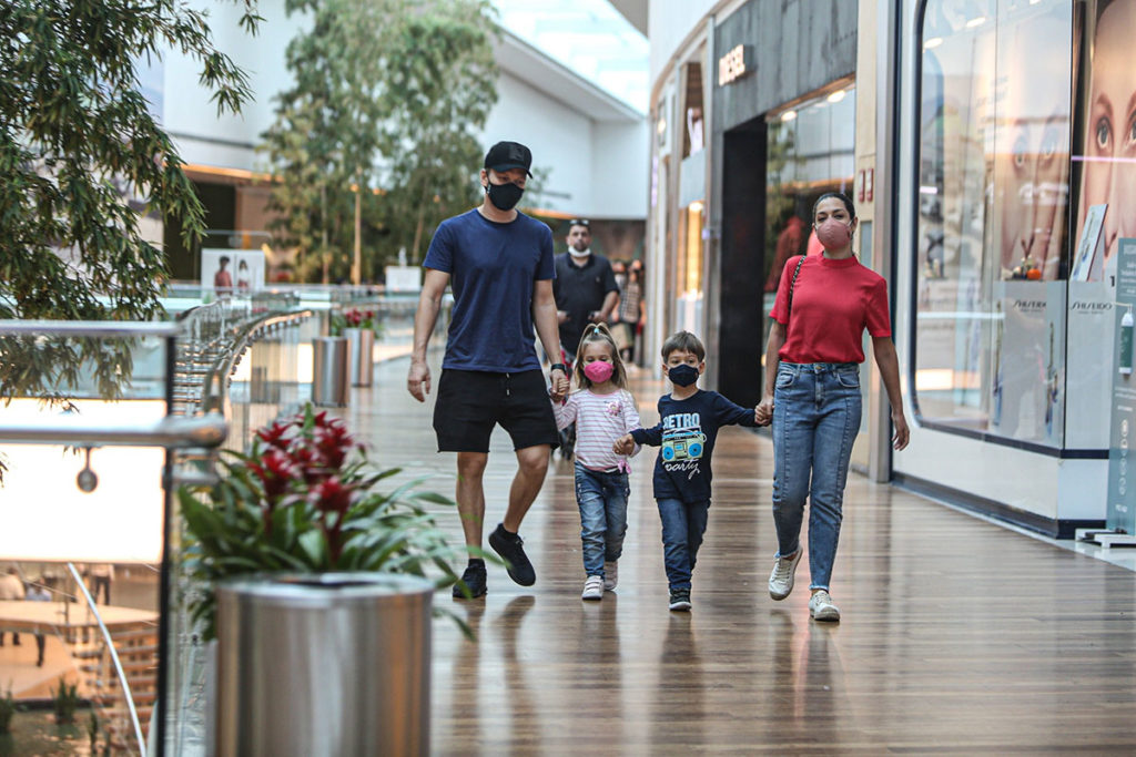 Michel Teló e Thais Fersoza passeiam com os filhos em shopping