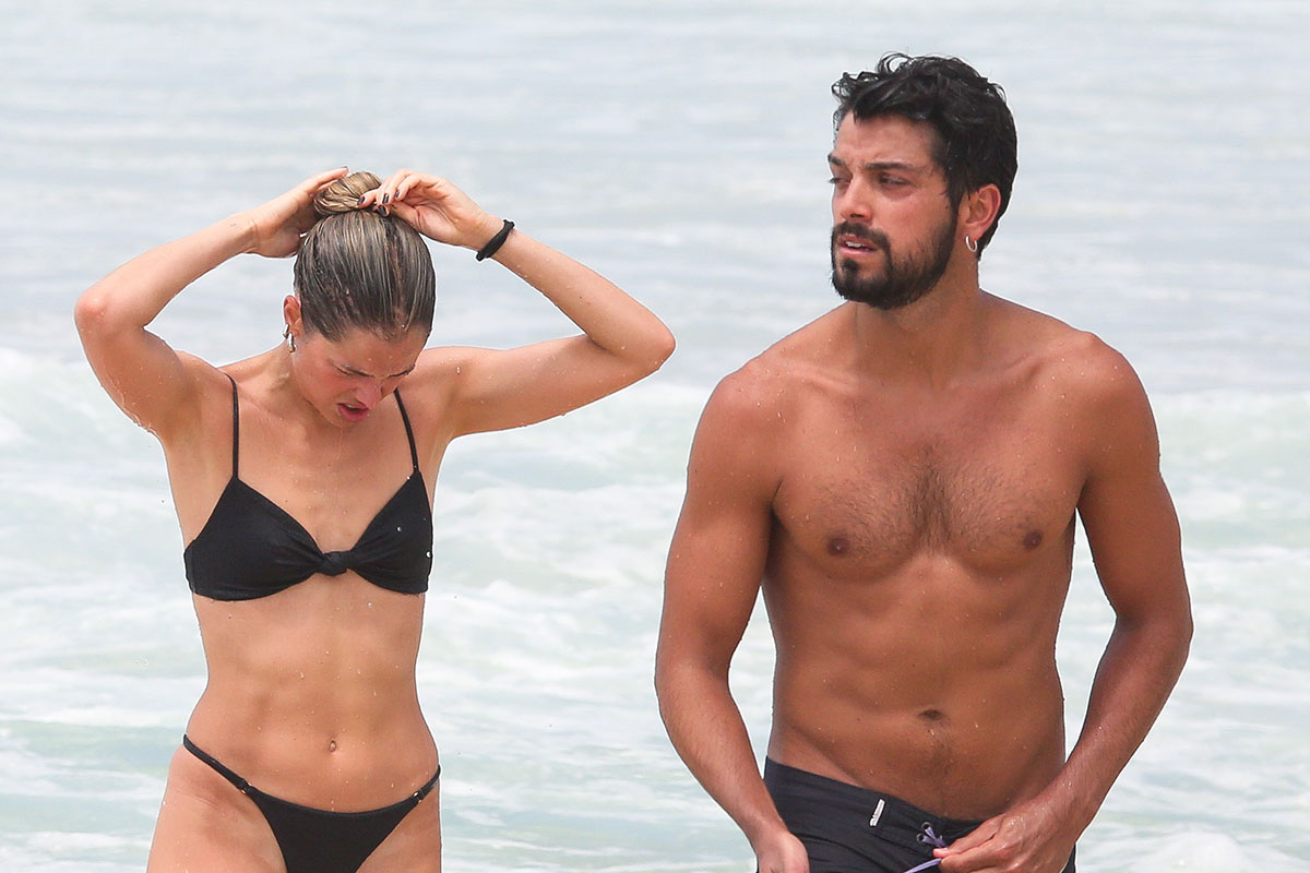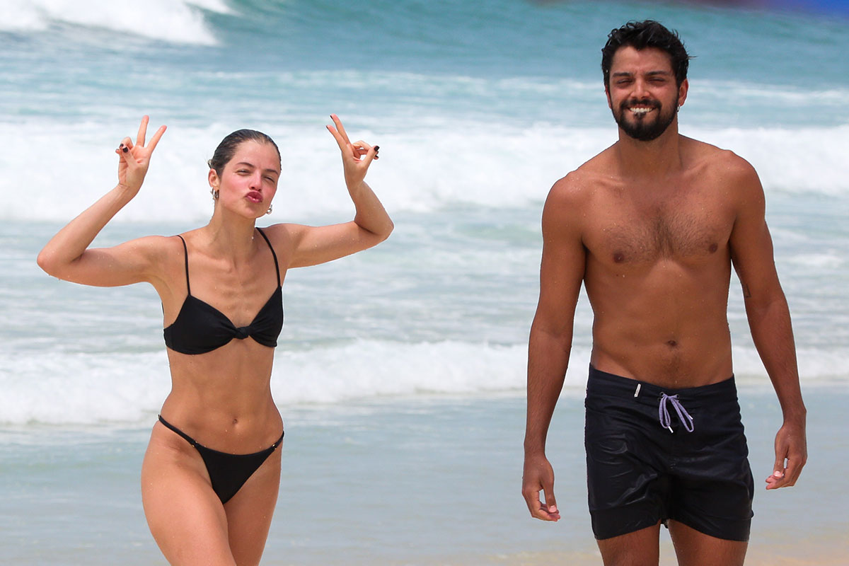 Agatha Moreira, que interpreta a Graça, aproveitou o tempo livre para curtir a praia da Barra da Tijuca ao lado do namorado Rodrigo Simas.