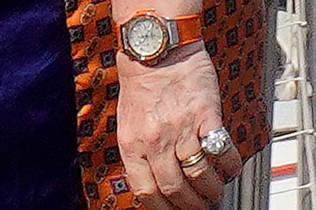 Tudo combinando: até o relógio de Elton John combinava com as cores da camisa