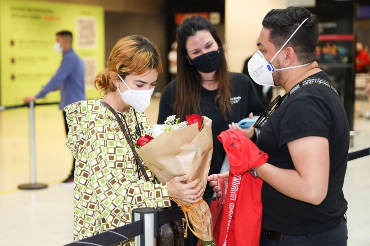 Depois de vencer o Prêmio de Artista Brasileira do Ano no MTV EMA, na Hungria, Manu Gavassi teve outra surpresa em terras brasileiras. A cantora foi recebida por um fã que a deu um buquê de flores vermelhas. Toda simpática, a artista conversou com o rapaz, que até se emocionou enquanto falava com a ex-BBB. O vôo de Manu chegou ao Brasil no aeroporto de Guarulhos, em São Paulo, na noite desta terça-feira, 16 de novembro.