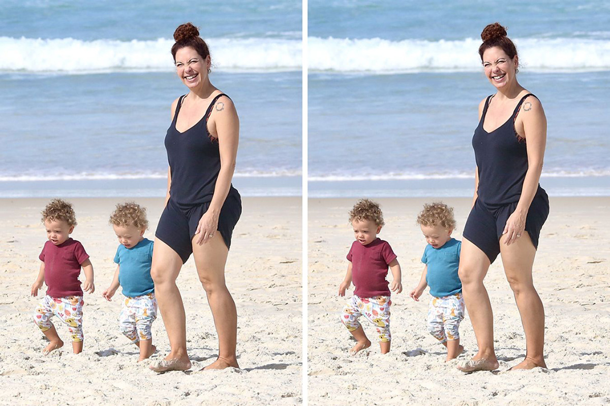 Fabiula aproveitou o tempo livre para curtir praia com os filhos gêmeos – Foto: Fabrício Pioyani/AgNews