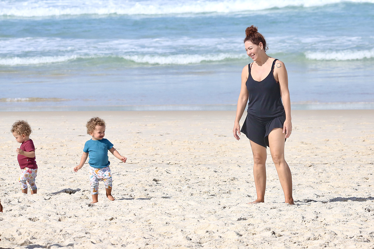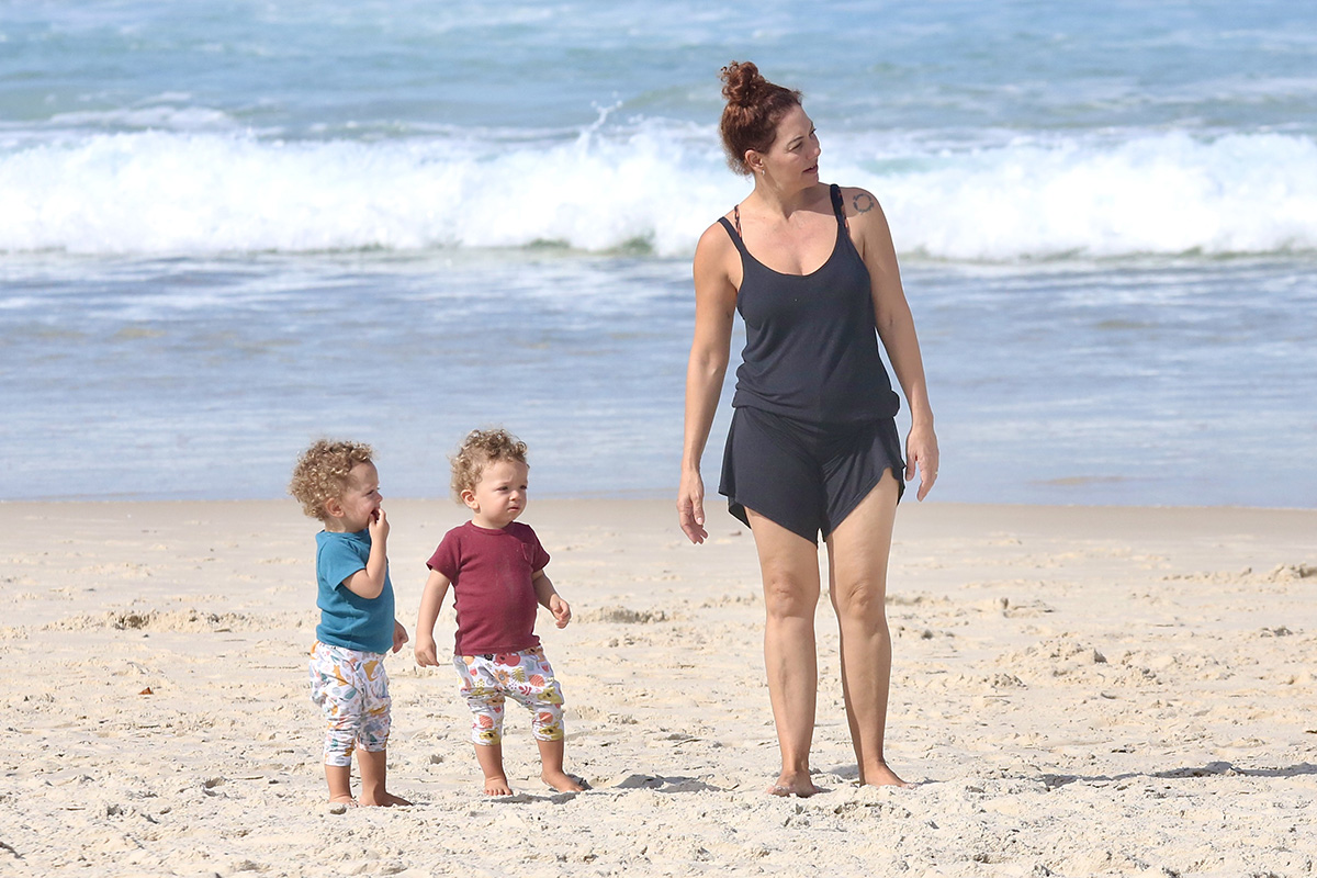 Fabiula Nascimento curtiu praia com os filhos gêmeos Roque e Raul – Foto: Fabrício Pioyani/AgNews