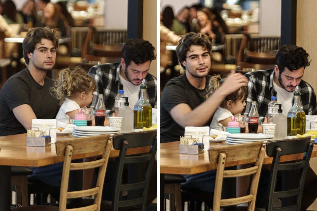 Além dos casais, quem também marcou presença no encontro foi o ator Rafael Vitti, que levou a filha, Clara Maria, também de 2 anos e fruto de seu casamento com a apresentadora Tatá Werneck. Assim, o grupo juntou as mesas de um restaurante no local e foram flagrados enquanto conversavam.