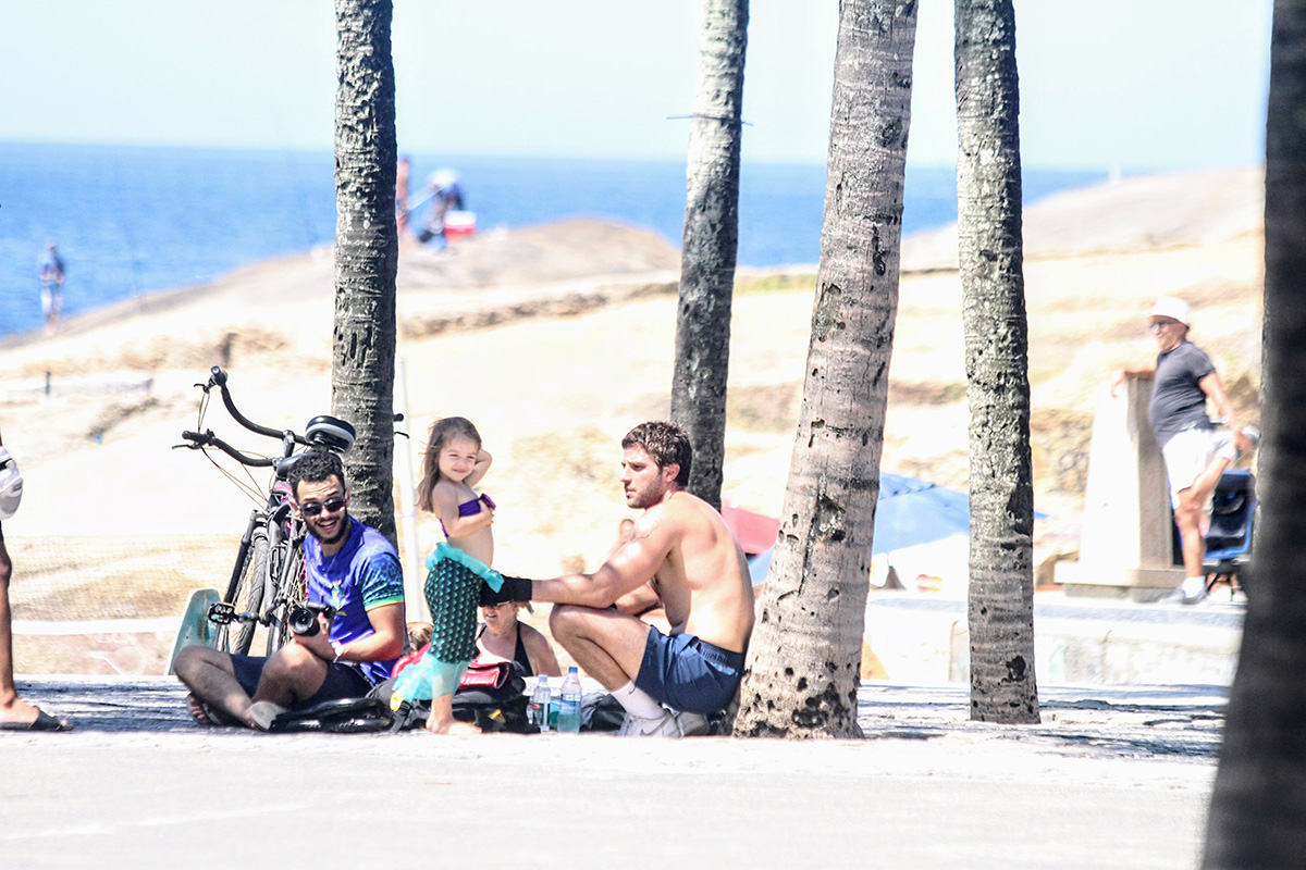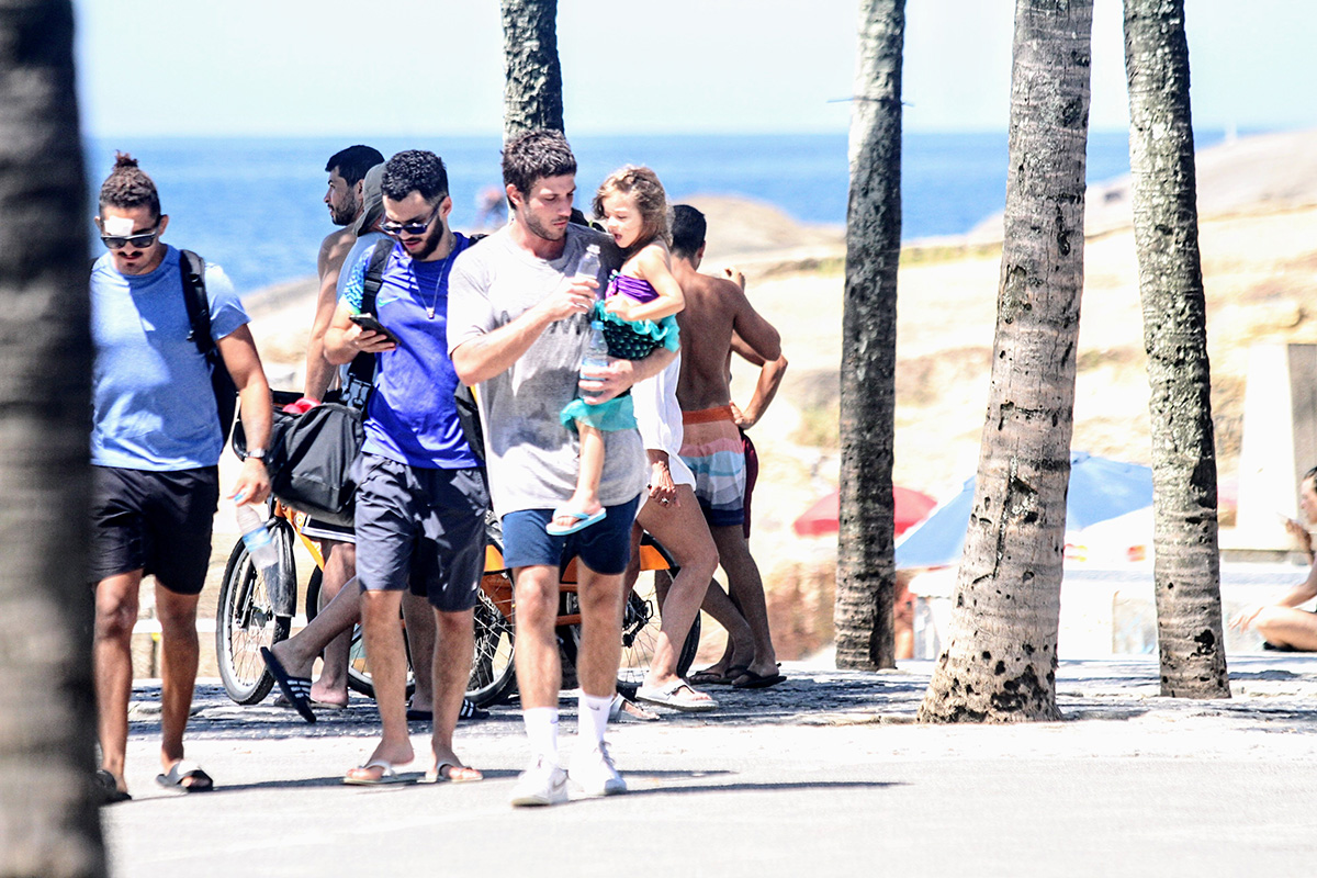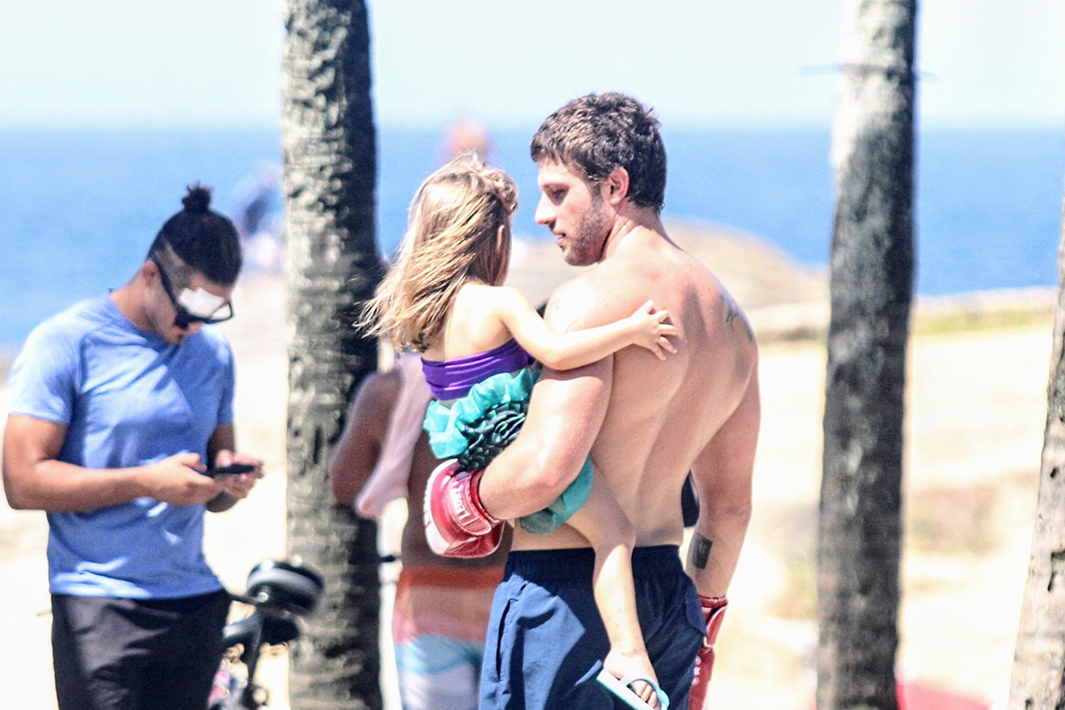 Chay Suede foi fotografado na orla com a filha Maria – Foto: Dan Delmiro/AgNews