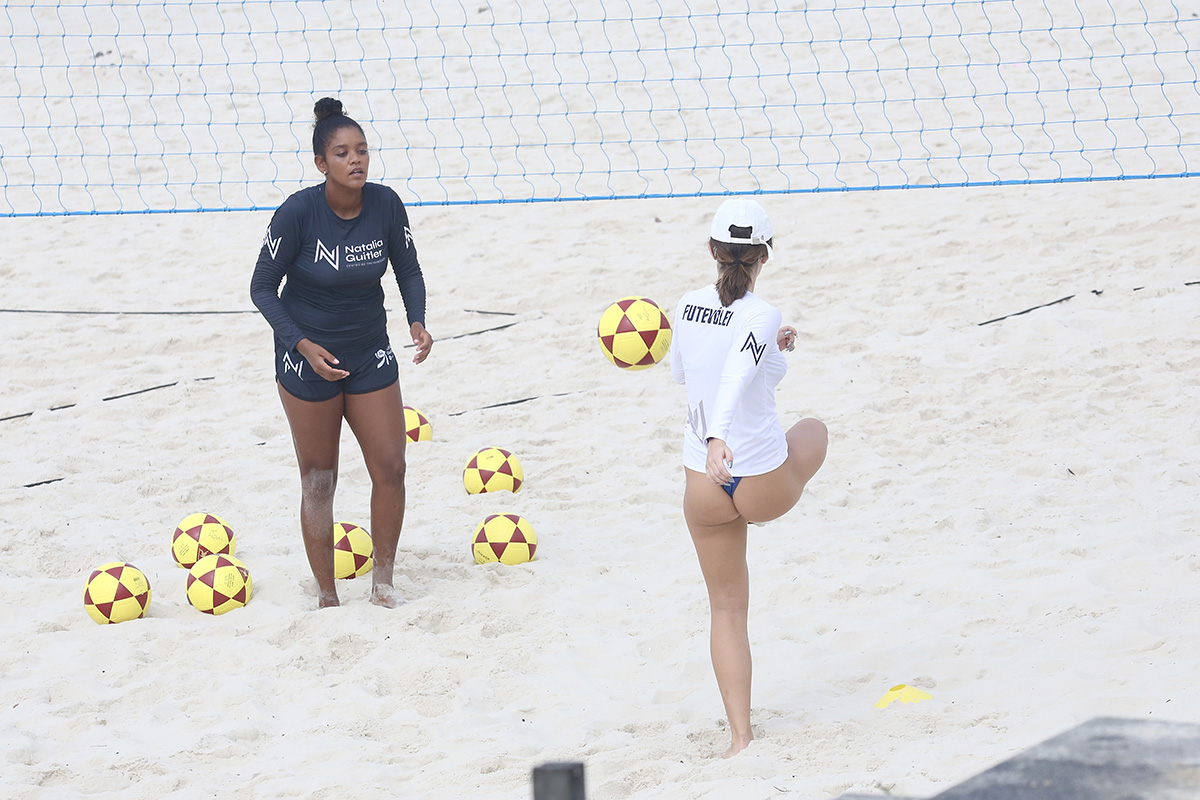 A atriz se exercitou na areia – Foto: Fabrico Pioyani/AgNews