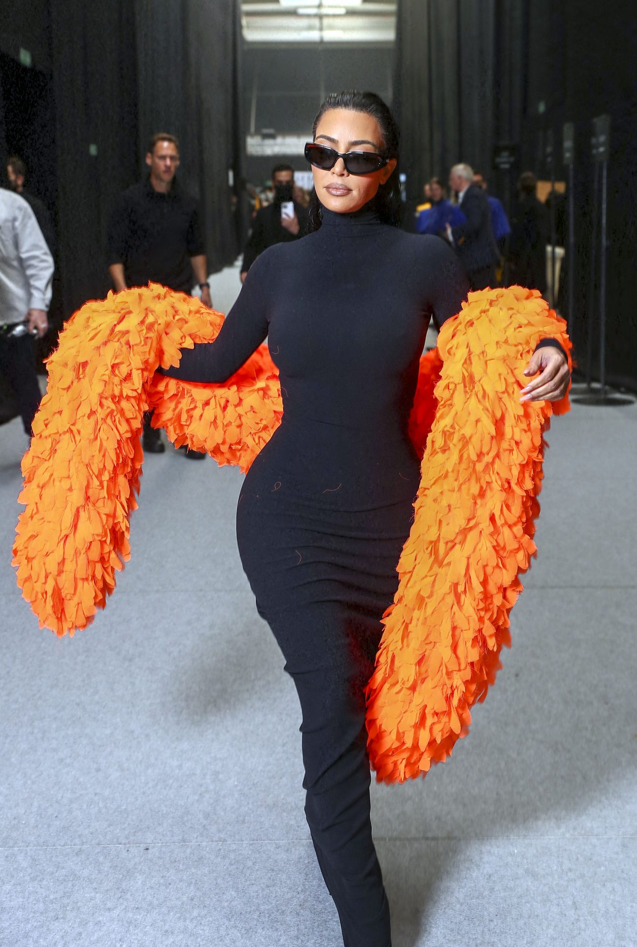 Sabemos que quando o assunto é moda, Kim Kardashian sempre aparece como uma das principais celebridades que arrasam nos looks, e desta vez não foi diferente. A empresária marcou presença no desfile de moda “Balenciaga Winter 22 360” em Paris e fez questão de deixar o evento com um dos visuais apresentados pela marca. Para aguentar o inverno da França, a Kardashian escolheu um vestido longo preto e um casacão de franjas na cor laranja. Além disso, ela também apostou em um óculos de sol, também preto.