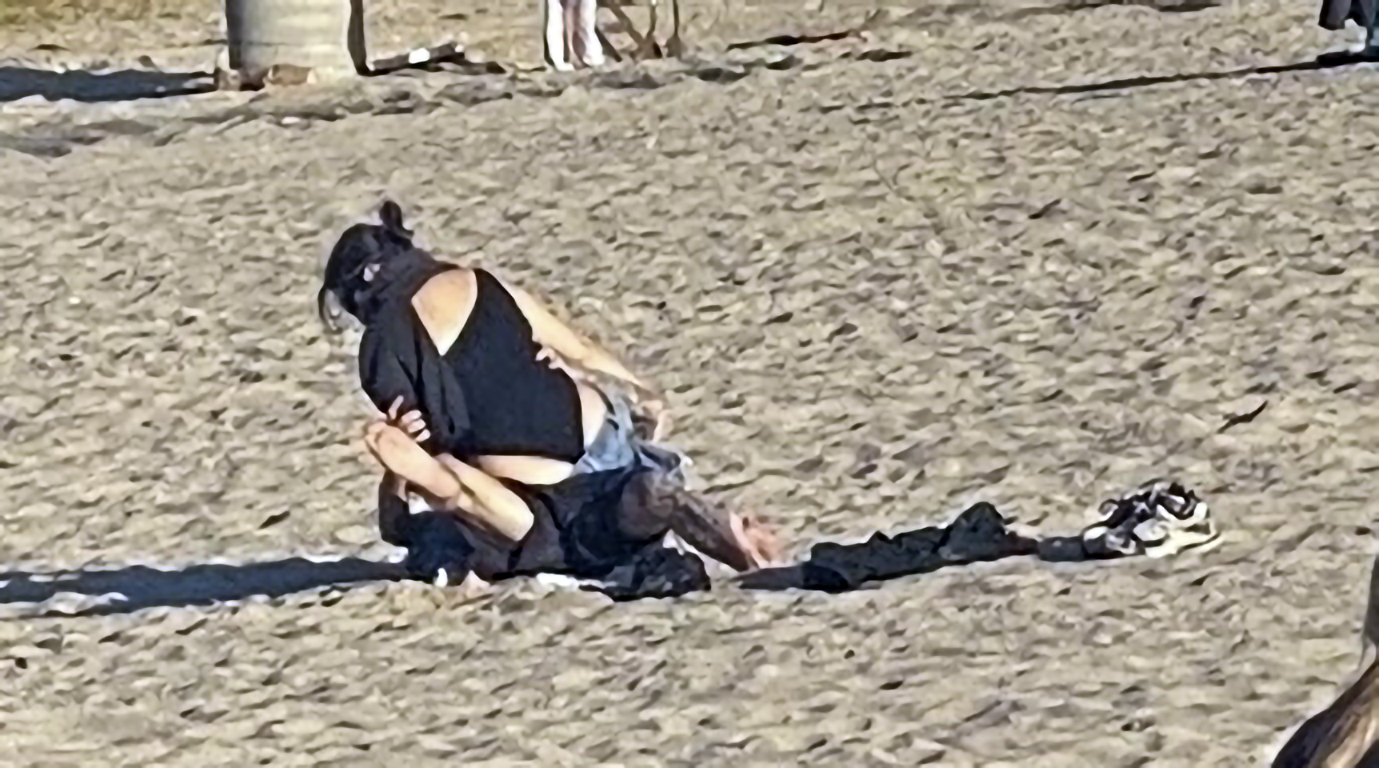 Segundo o site TMZ, o casal, que está aproveitando uma estadia no Montage Resort, chamou atenção de outros banhistas por conta dos amassos escandalosos na areia do local. Kourtney foi vista sentada no colo de Travis, enquanto o baterista estava com suas mãos puxando o jeans da atriz para baixo.