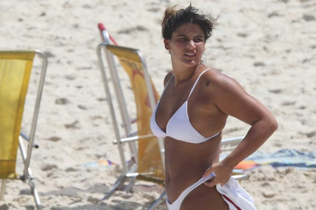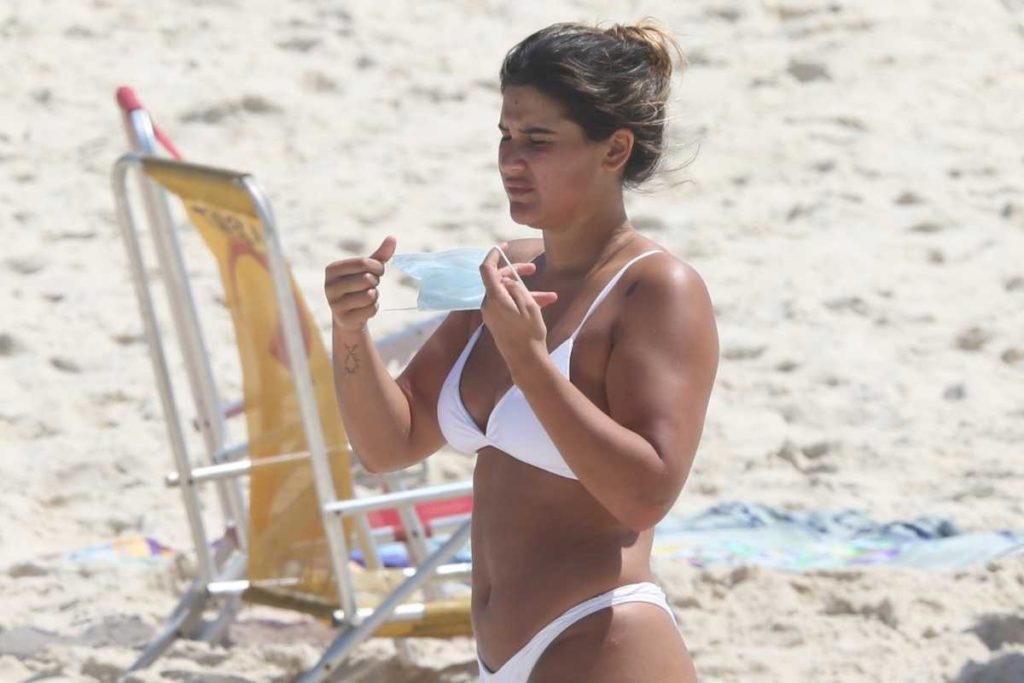 Já Giulia estava na praia da Barra da Tijuca, utilizando uma roupa de banho na cor branca, e sua boa forma física também chamou atenção. O fotógrafo registrou o momento que ela tirou sua máscara de proteção contra a covid-19.