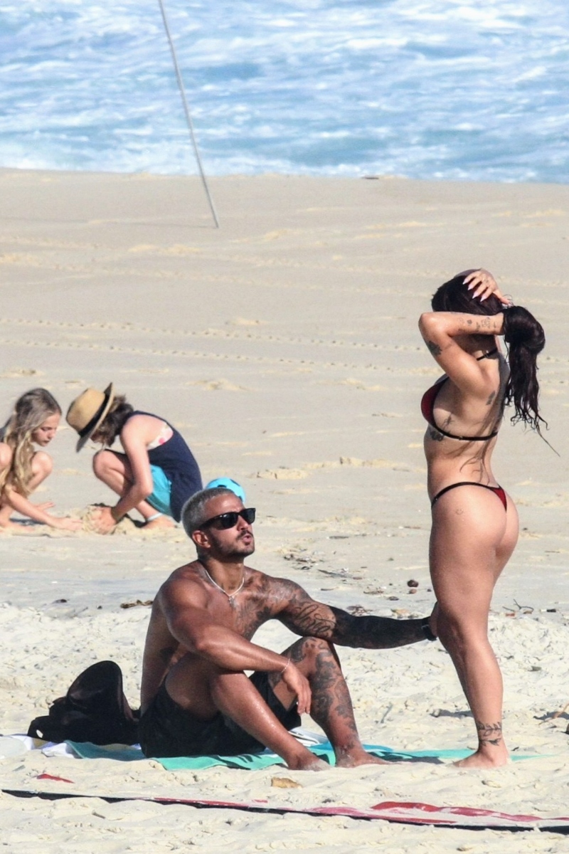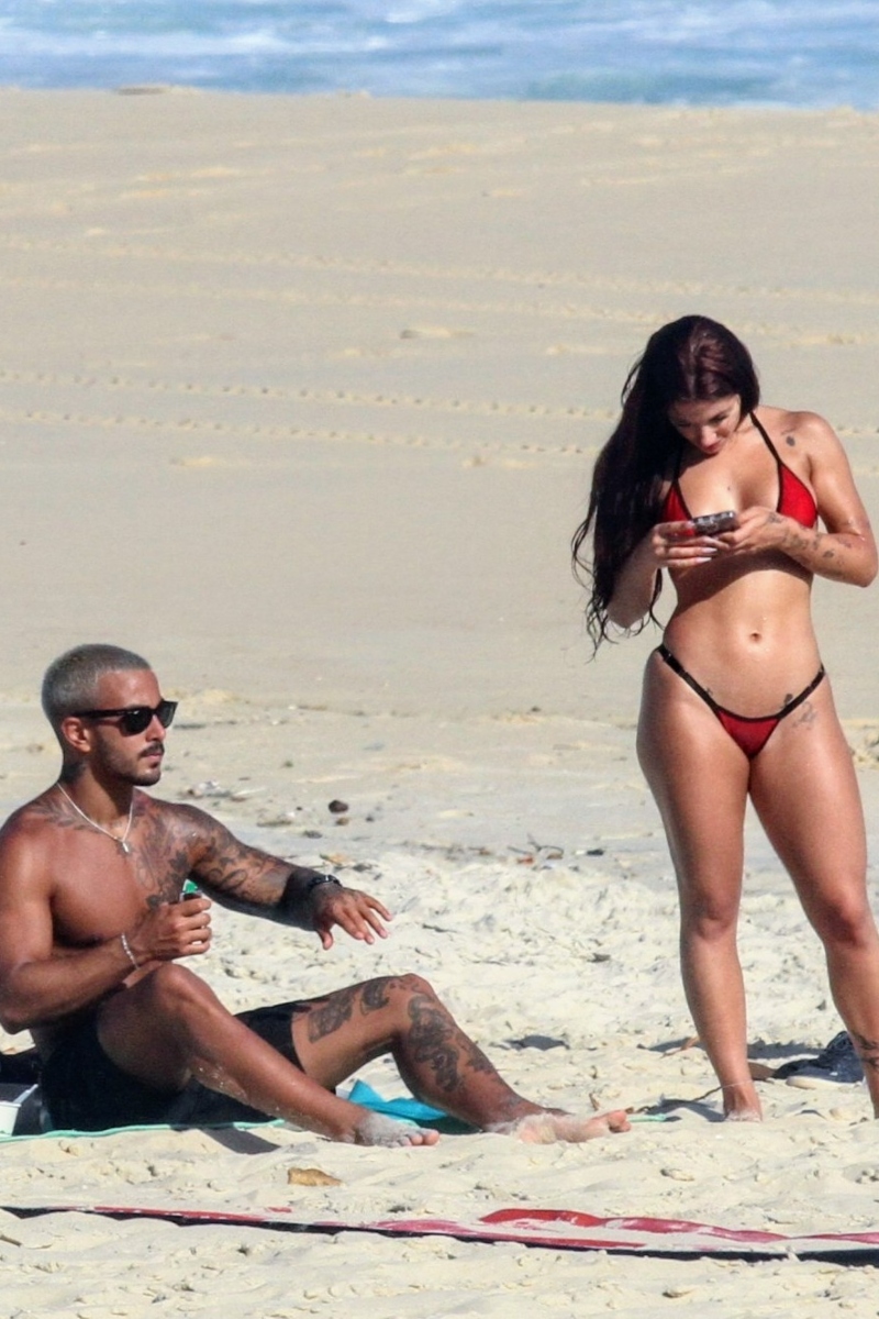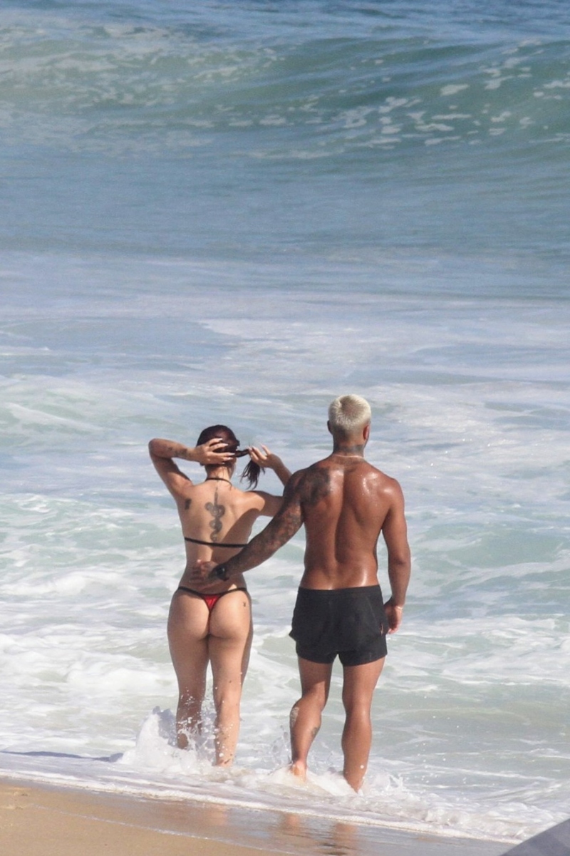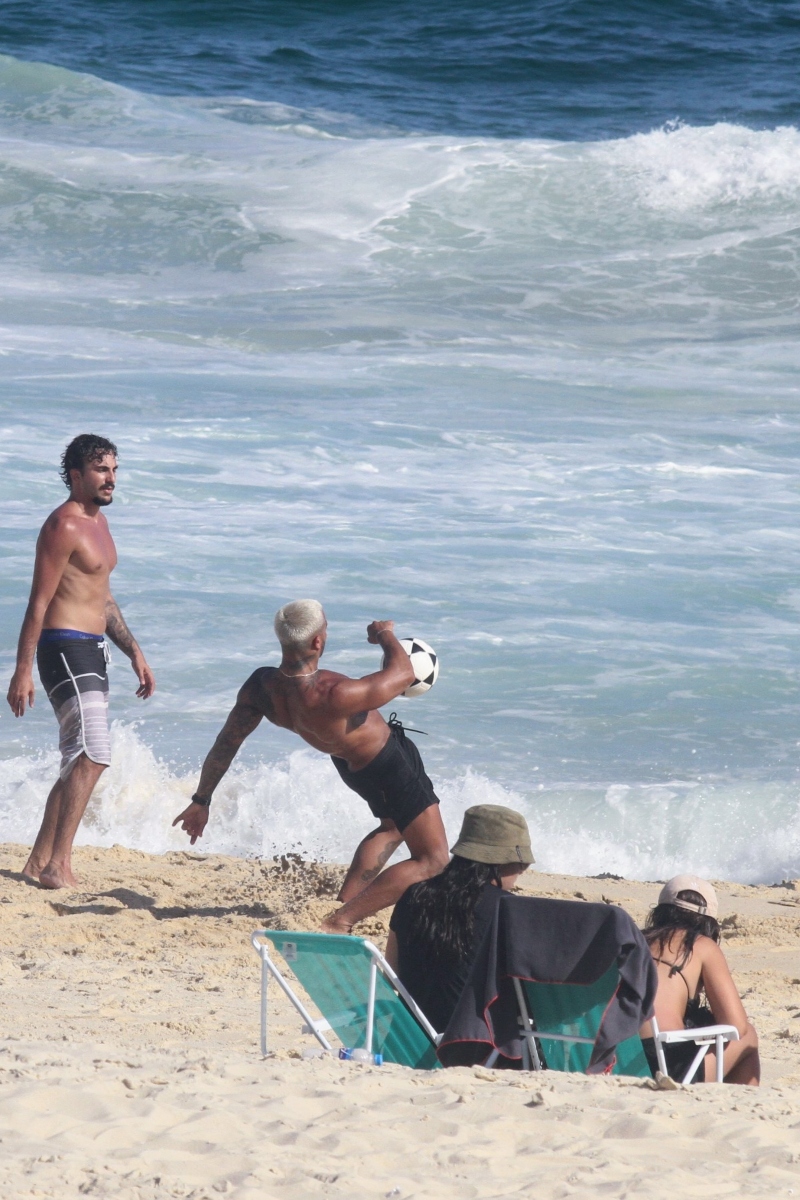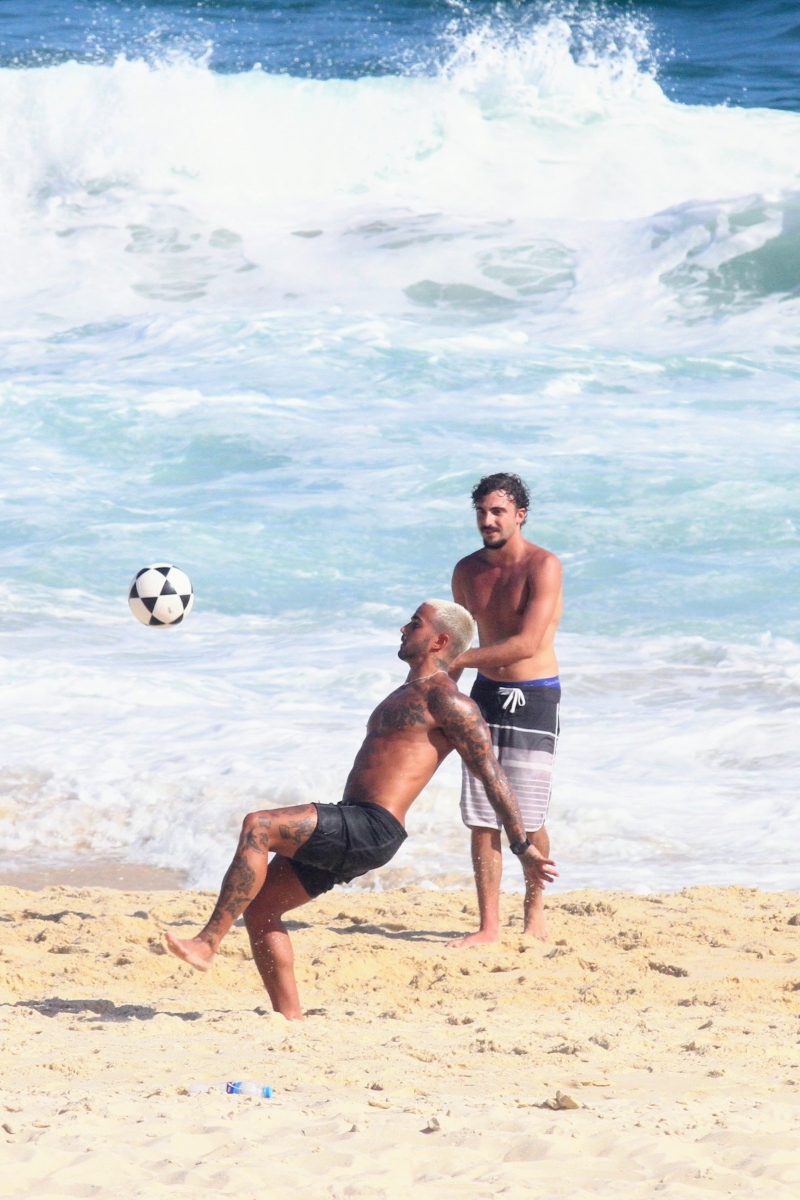 Com seu corpão em forma, à bordo de um biquíni fio-dental, Nathalia chamou atenção. O modelo que despontou em um clipe de Anitta, por sua vez, aproveitou ainda para jogar altinha com alguns amigos.