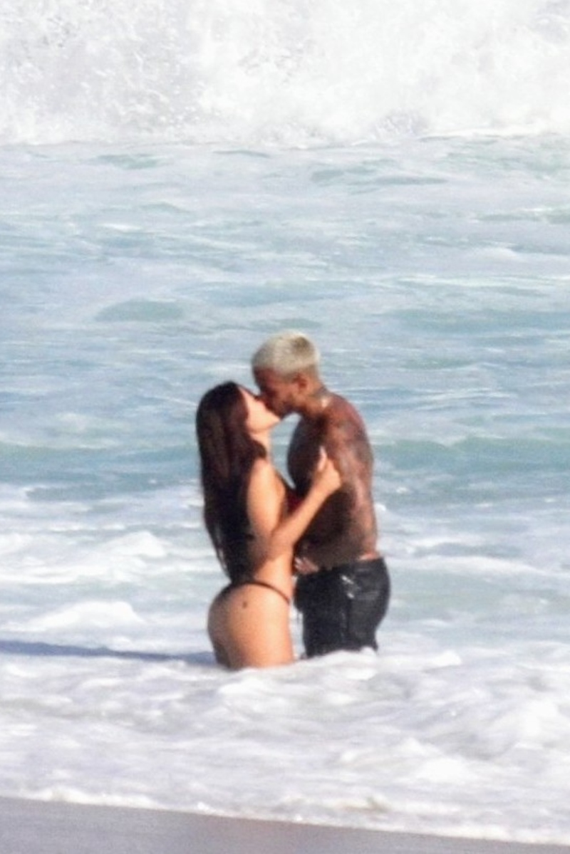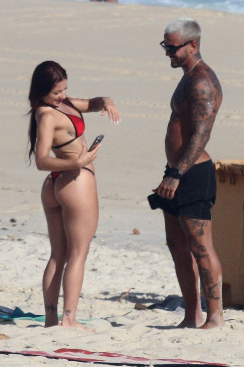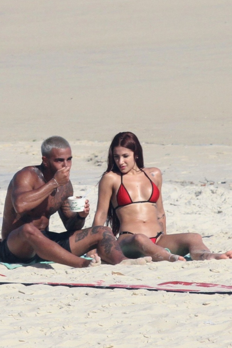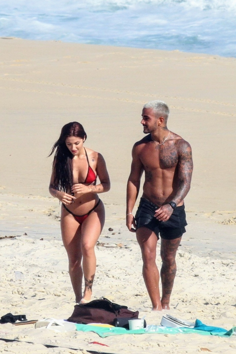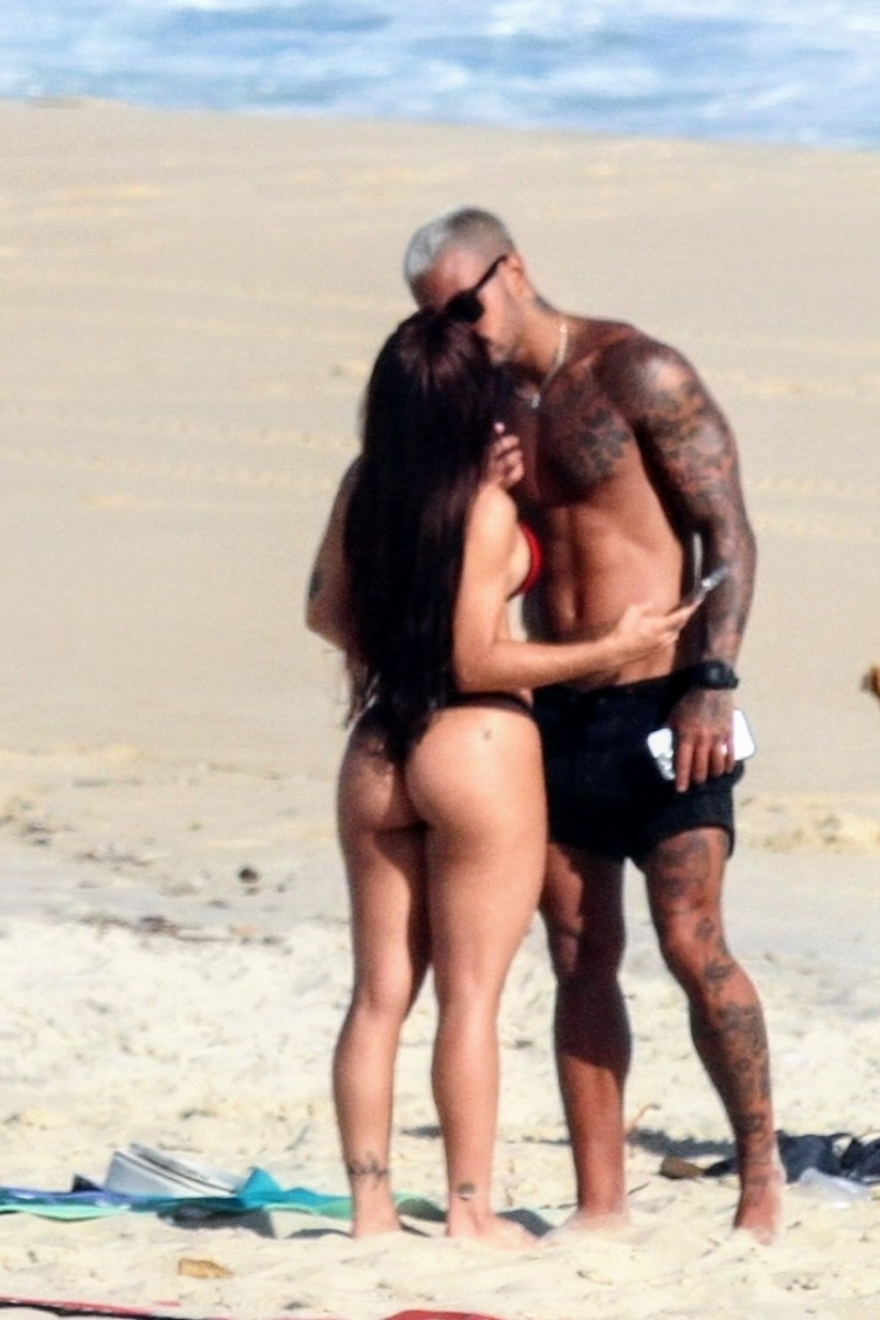 Com seu corpão em forma, à bordo de um biquíni fio-dental, Nathalia chamou atenção. O modelo que despontou em um clipe de Anitta, por sua vez, aproveitou ainda para jogar altinha com alguns amigos.
