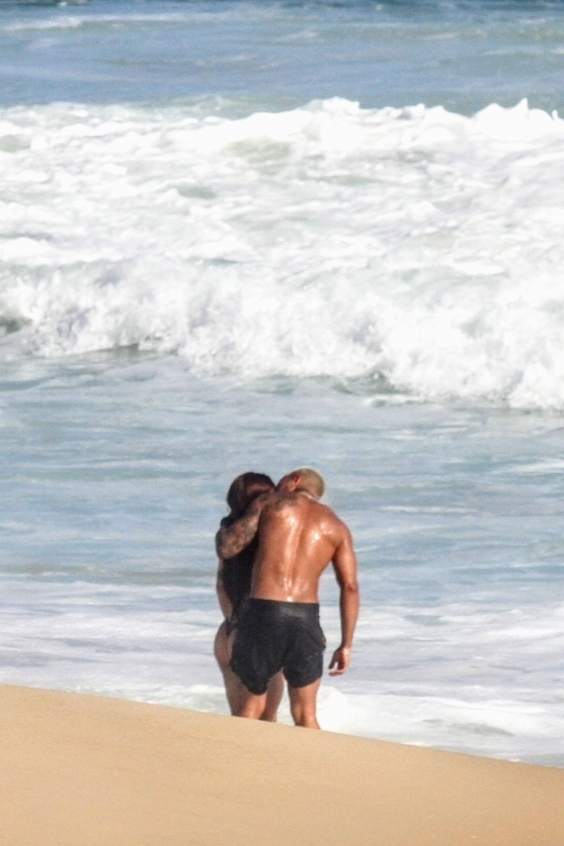 Nathalia Valente e Yuri Meirelles trocam beijos apaixonados na praia